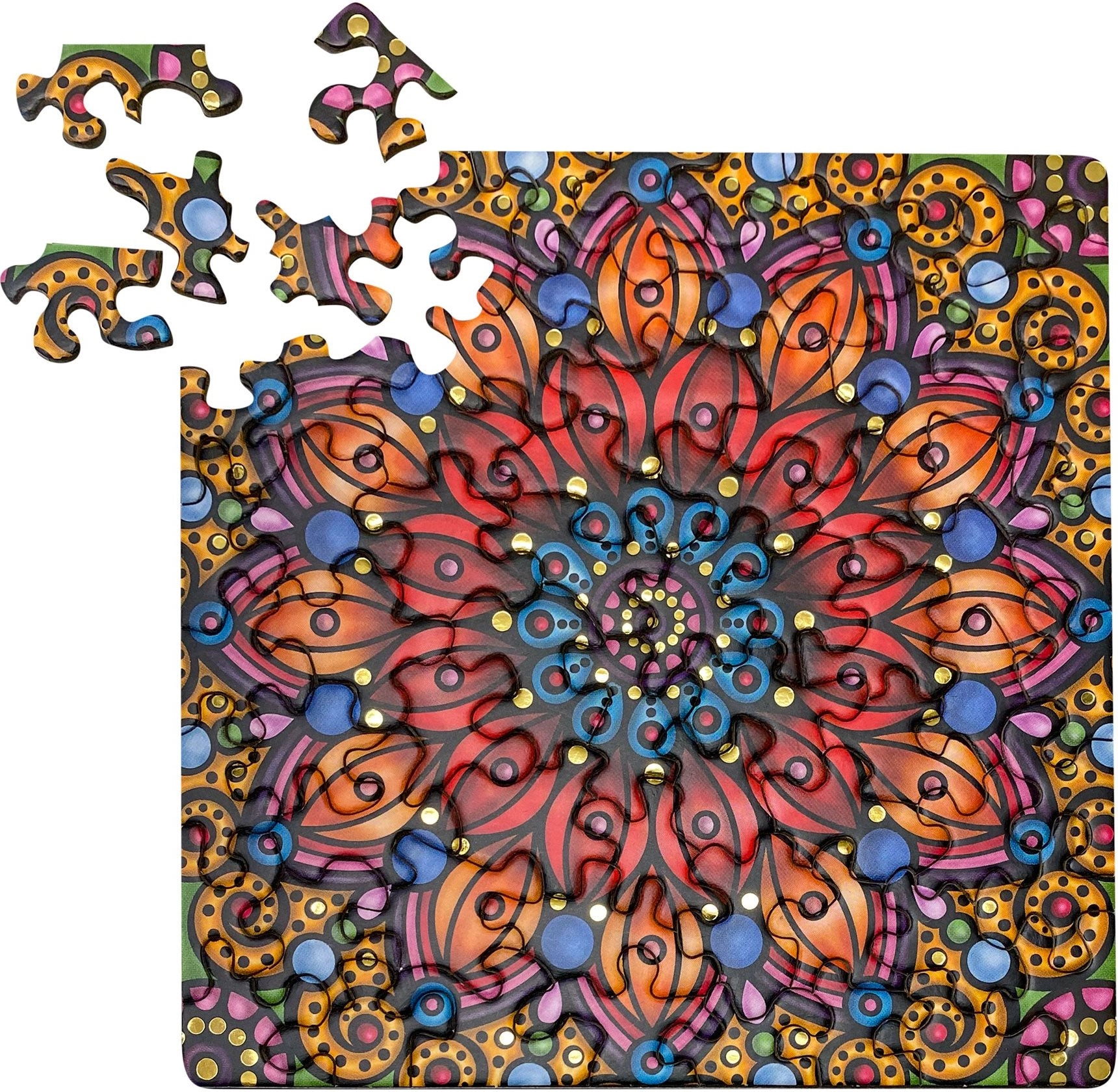 Ce puzzle carré ravira tous ceux qui aiment les défis au format réduit. Grâce aux formes atypiques des pièces, l’assemblage est amusant et visuellement captivant, tandis que l’éclat doré confère une touche de luxe à l’image finale.