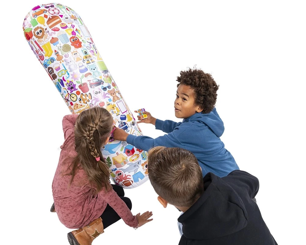 La pièce maîtresse du jeu est un « kiwak » souple lesté d’eau, orné de dizaines d’icônes colorées. Résistant, sûr et idéal pour un jeu d’action sans crainte des chocs.