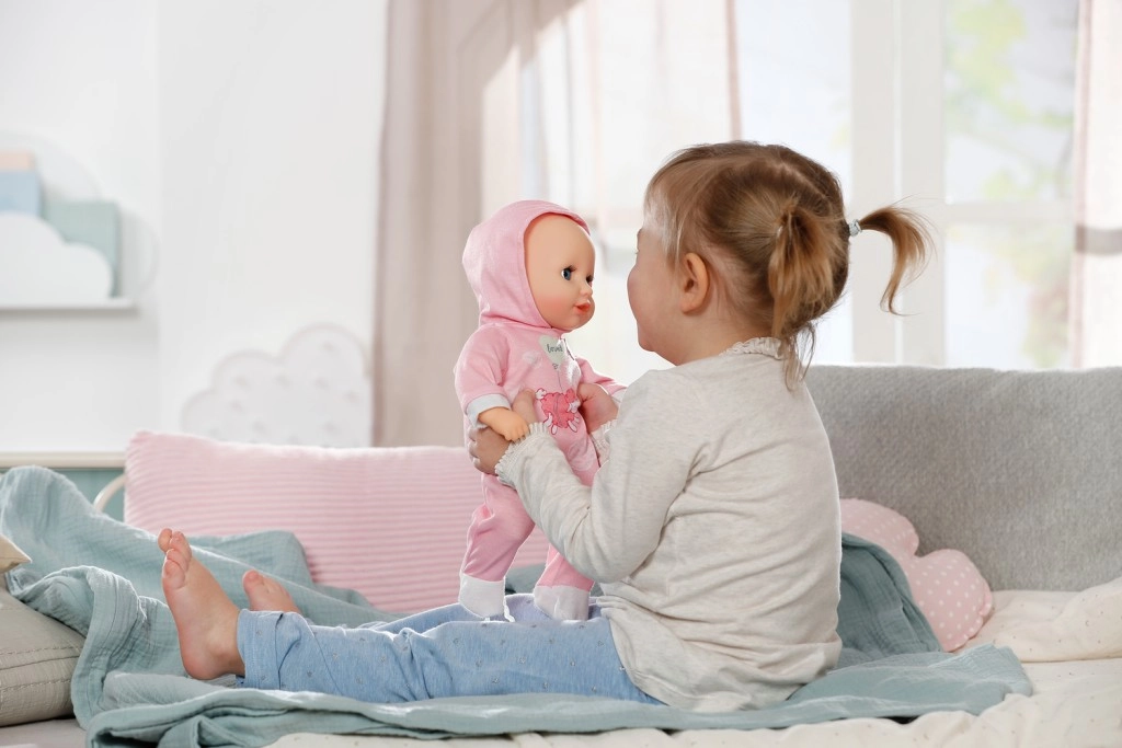 Découvrez la magie des jeux d’imitation avec la poupée BABY born Hannah – viens jouer. Grâce à son corps souple, elle est agréable au toucher, se blottit parfaitement dans les bras et invite aux câlins. Les enfants apprécieront l’interaction simple – la poupée émet de doux sons de bébé, produit de mignons sons de boisson lorsqu’elle boit au biberon, et, au moment de s’endormir, ronronne doucement et ferme les yeux.
