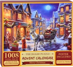 Découvrez la magie de Noël chaque jour avec ce calendrier de l’Avent unique composé de puzzles. Dans chacune des 24 fenêtres, vous trouverez 42 pièces qui s’assembleront progressivement pour former une grande affiche 70 × 50 cm représentant une scène de Noël avec le PÈRE NOËL, un traîneau et un renne. Les pièces sont solides, avec une impression brillante et sont numérotées au verso pour un tri facile.