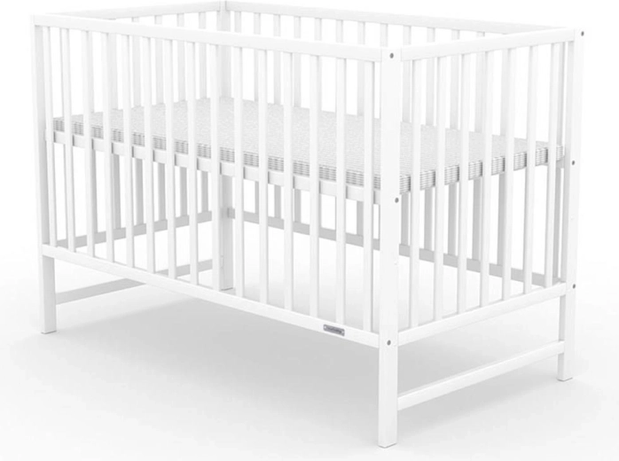 Le lit NEW BABY BASIC en blanc allie design moderne, éléments de sécurité bien pensés et grande longévité. Le cadre robuste en 100 % bois de pin avec barreaux plats et trois lattes amovibles facilite l’accès à l’enfant ainsi que l’aération. Le sommier réglable sur 3 positions (22/38/51 cm) grandit avec votre bébé.