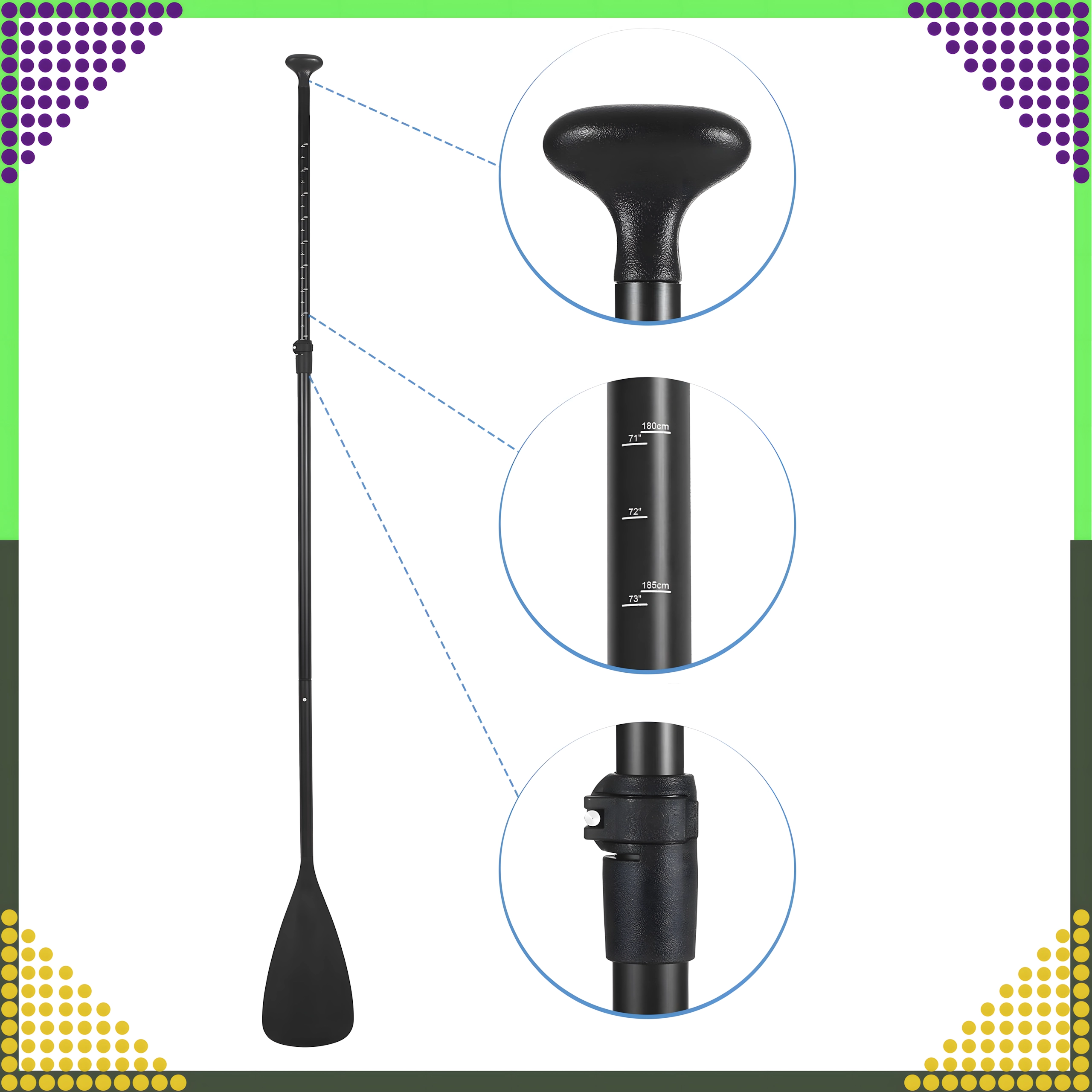 Le shaft en aluminium solide et la pale en nylon à forme ergonomique assurent une propulsion fiable et une longue durée de vie. Réglage rapide de la longueur et poignée type T-bar garantissent une prise en main confortable et un contrôle précis de la planche ou du kayak. Convient aux grands enfants, adolescents et adultes.