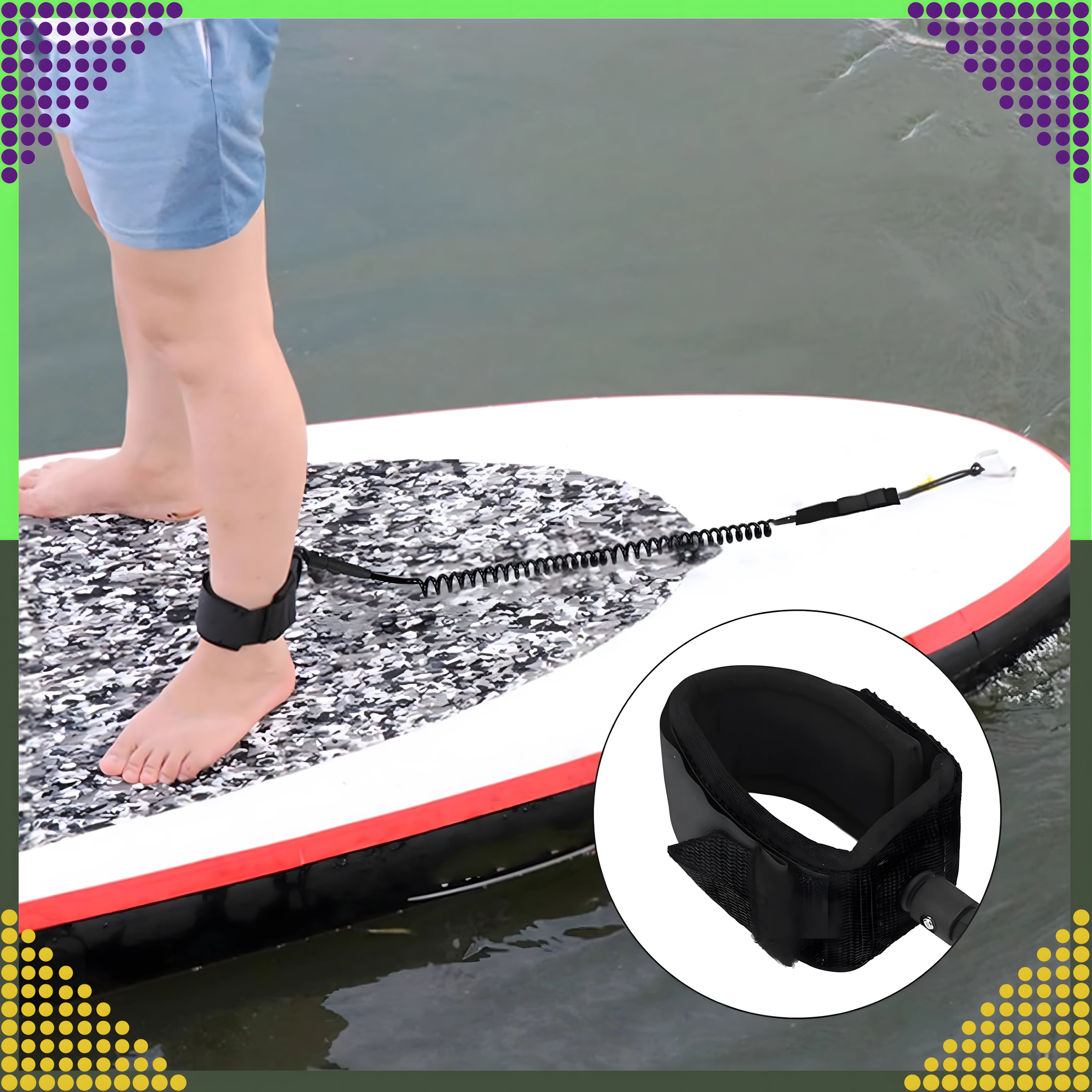 Ce leash de sécurité pour SUP est un accessoire essentiel pour tout pratiquant. Le cordon spiralé en TPU réduit la résistance dans l’eau et limite la traîne, tandis que la manchette de cheville doux rembourrage avec velcro reste sûre et confortable même lors de longues sorties.