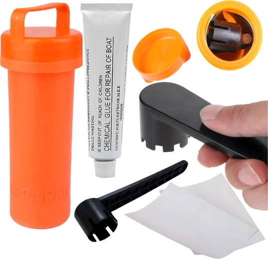 Ce kit de réparation compact est conçu pour une réparation rapide et de qualité des paddleboards, kayaks, rafts et autres embarcations. L’étui orange étanche garde le contenu au sec et en sécurité, pour l’avoir toujours à portée de main dans le sac ou à bord. Il comprend une colle chimique avec applicateur, des plaques de rustines et une clé de valve pour le serrage et l’entretien des valves.