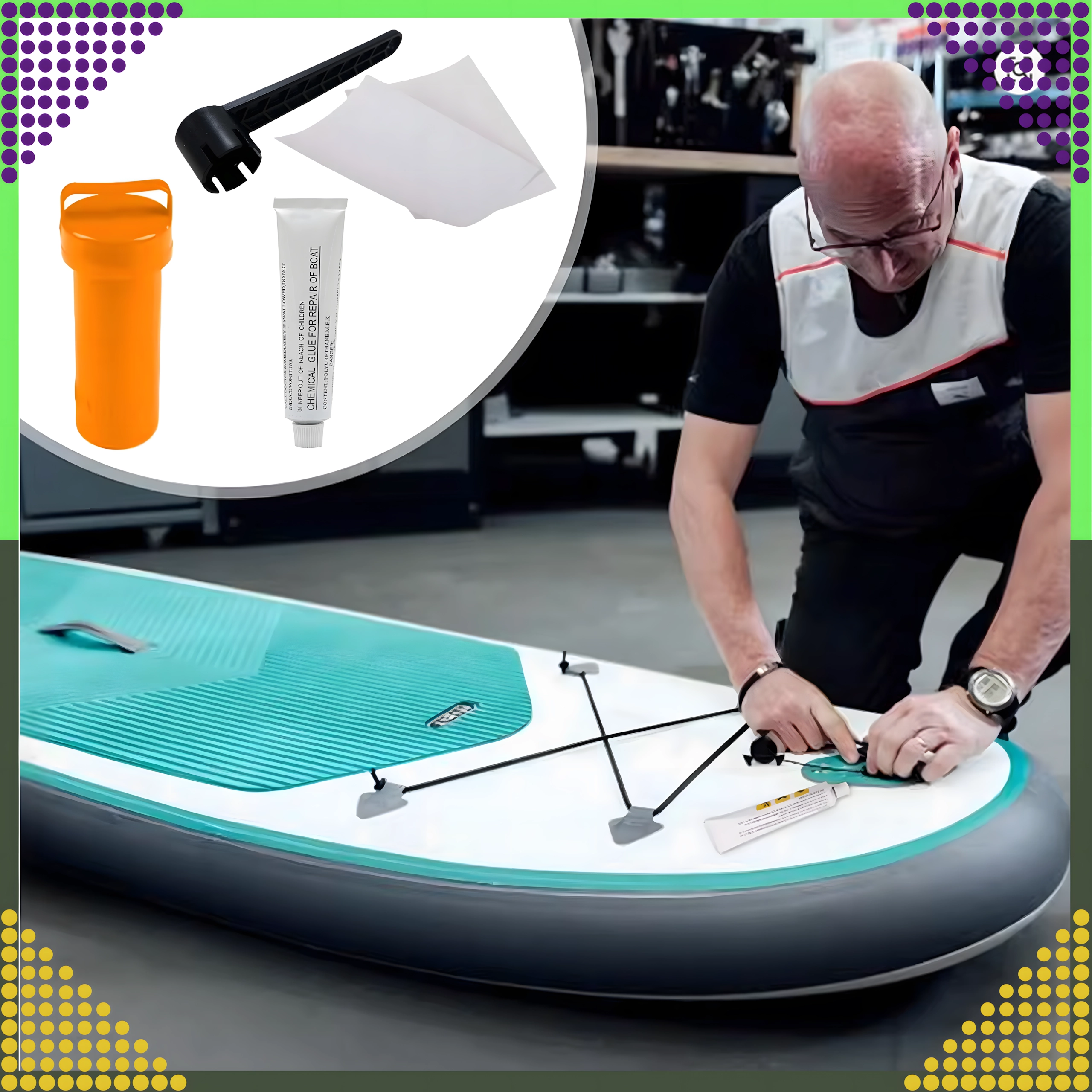 Le kit comprend une colle chimique et des plaques de rustines pour une liaison solide et durable sur le PVC et les surfaces gonflables. Idéal pour paddleboards, rafts, matelas et autres équipements gonflables.
