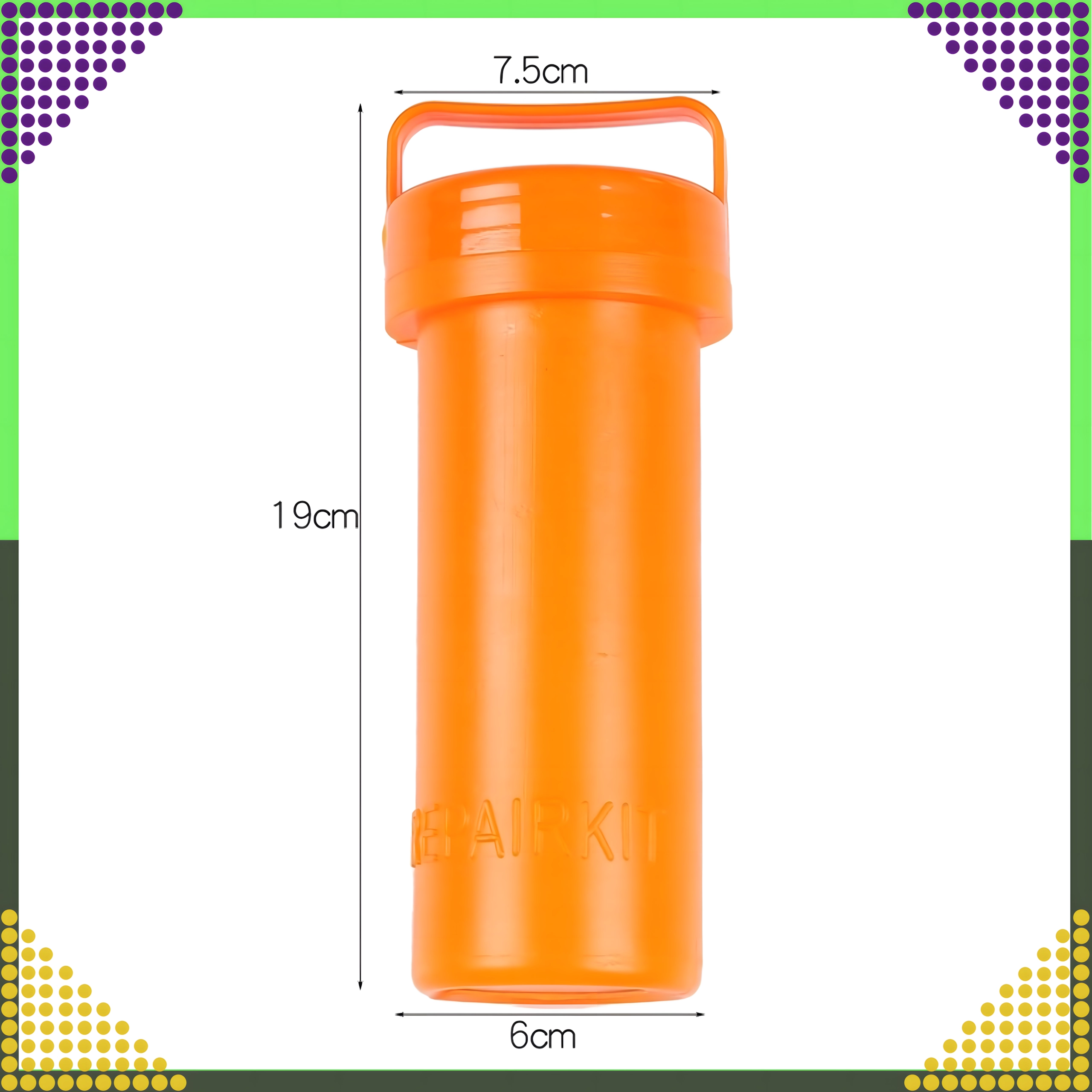 Le tube orange compact protège en toute sécurité la colle, les rustines et les outils de l’eau et des impuretés. Il se glisse facilement dans un sac à dos ou un sac étanche pour être prêt à une réparation rapide à tout moment.