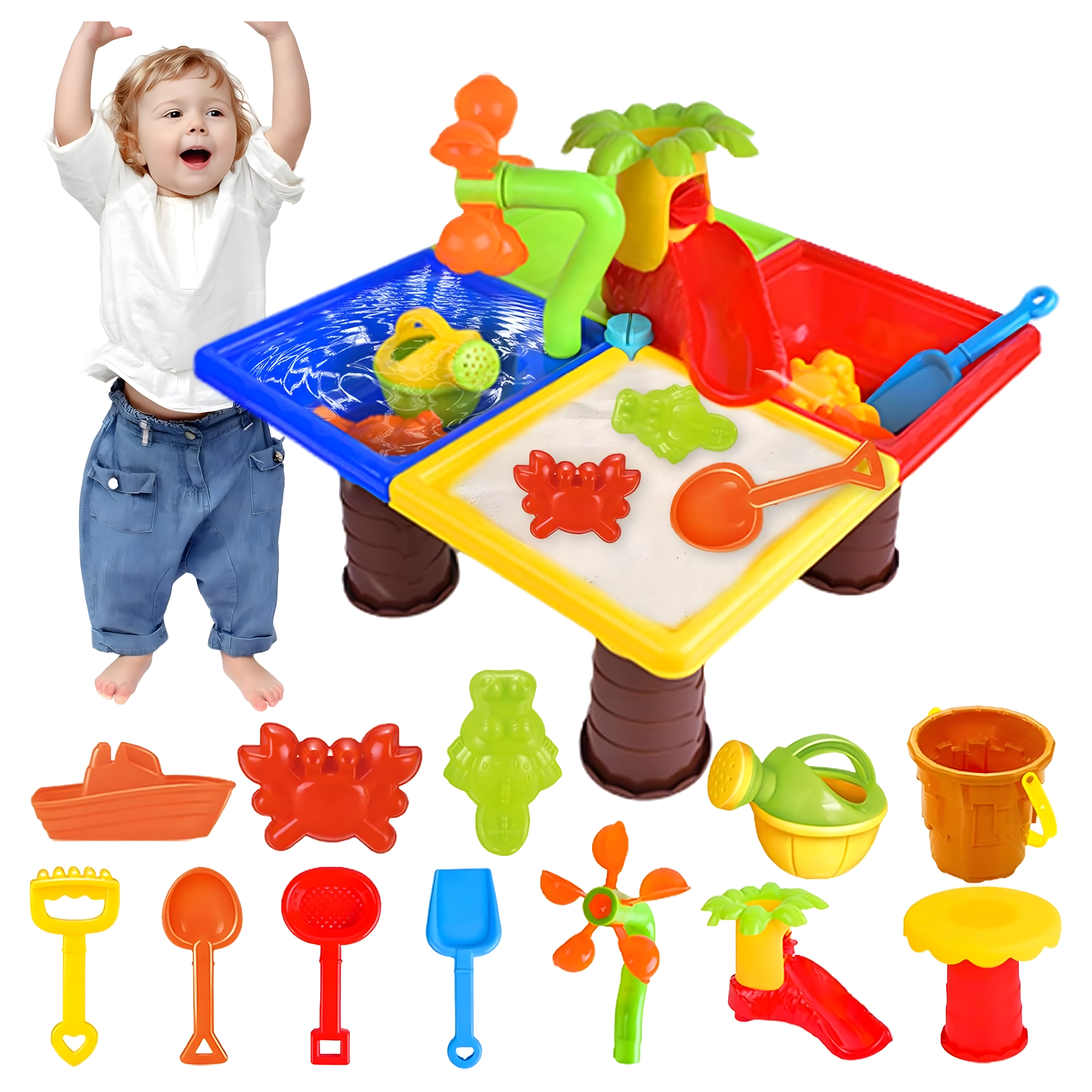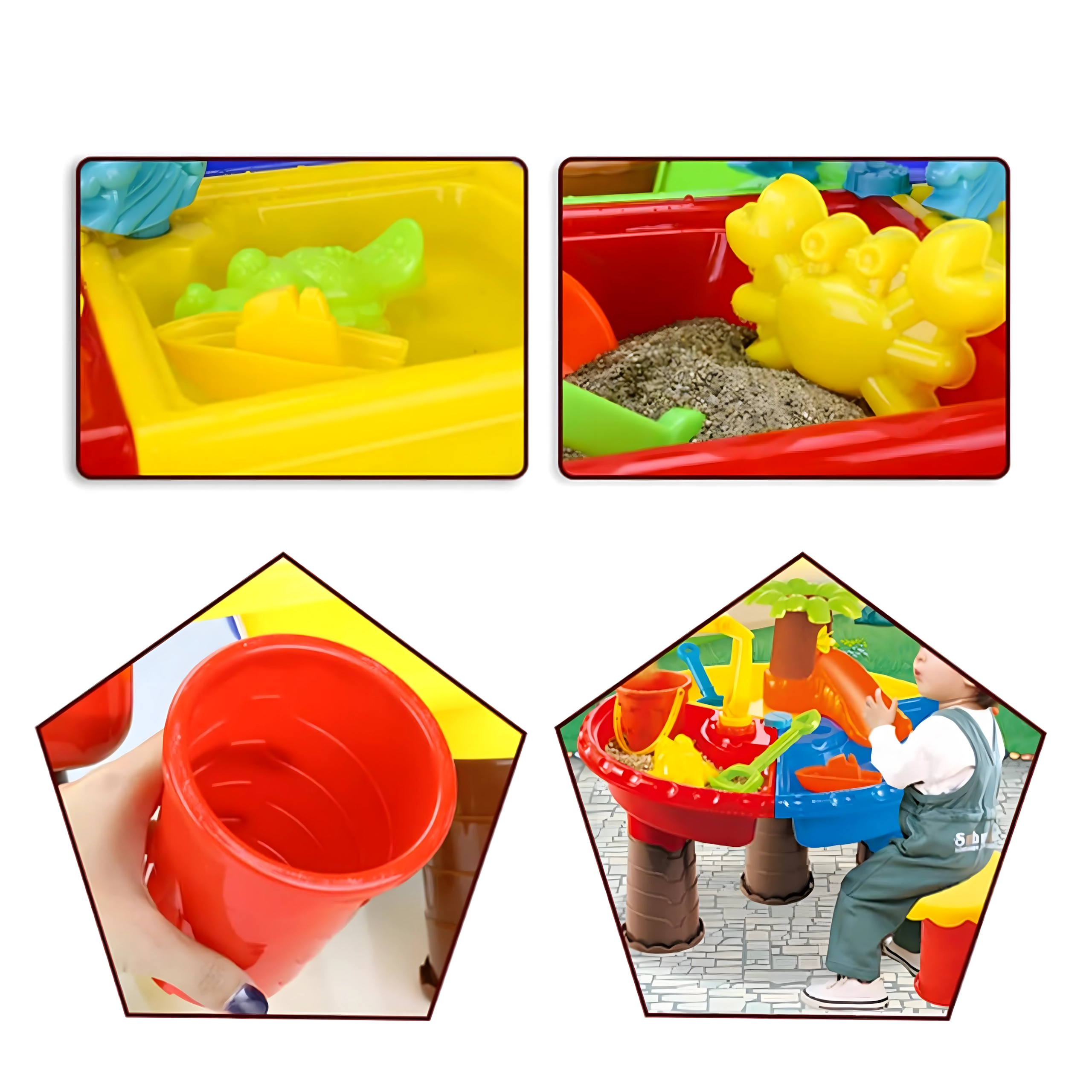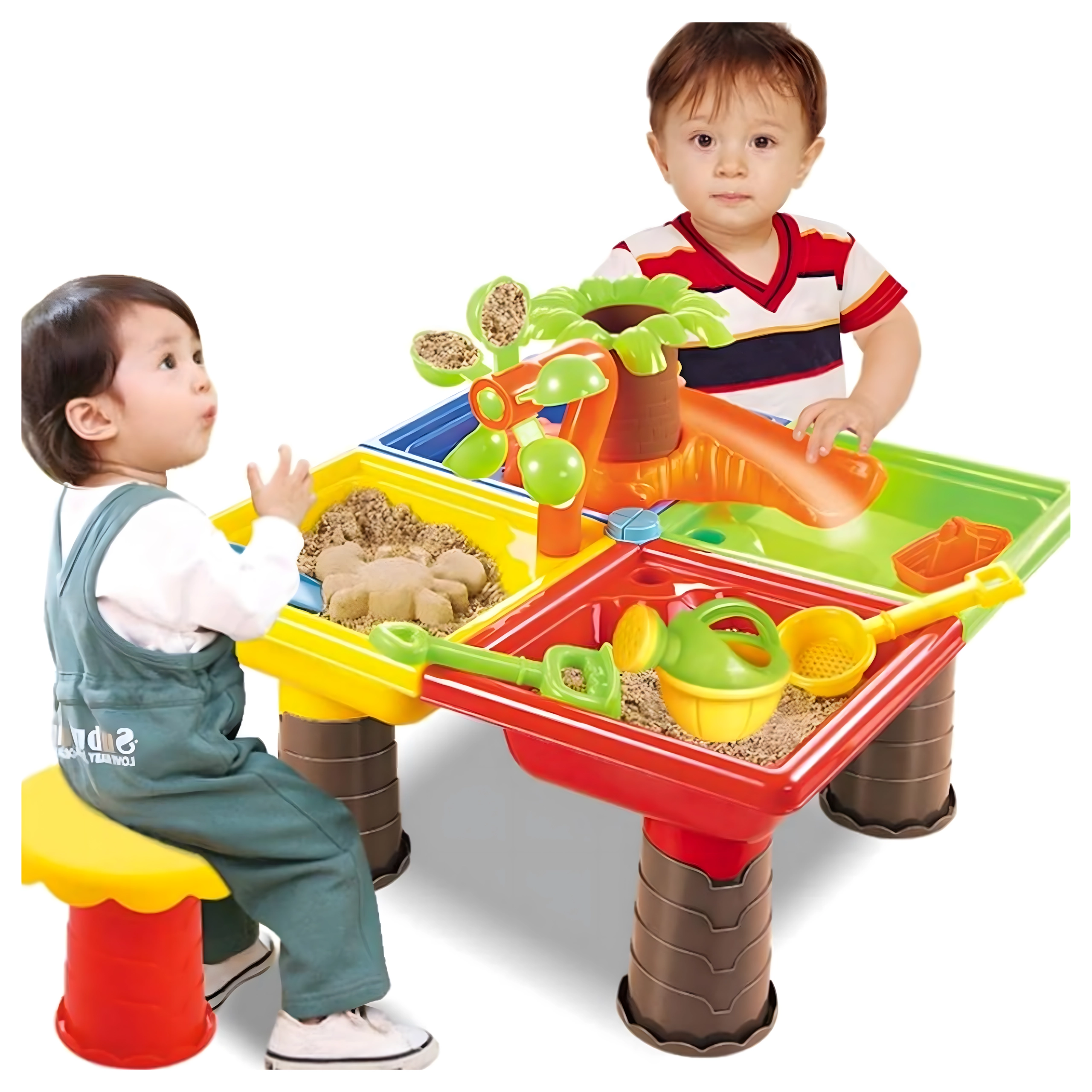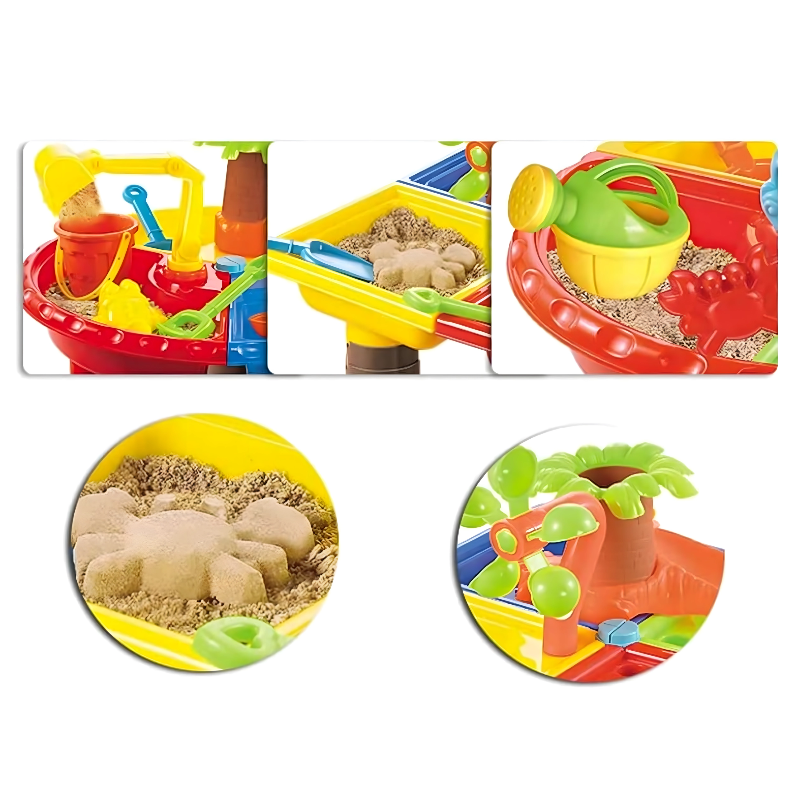 - Jeu eau et sable 2-en-1 – idéal pour le développement sensoriel et la création imaginative.