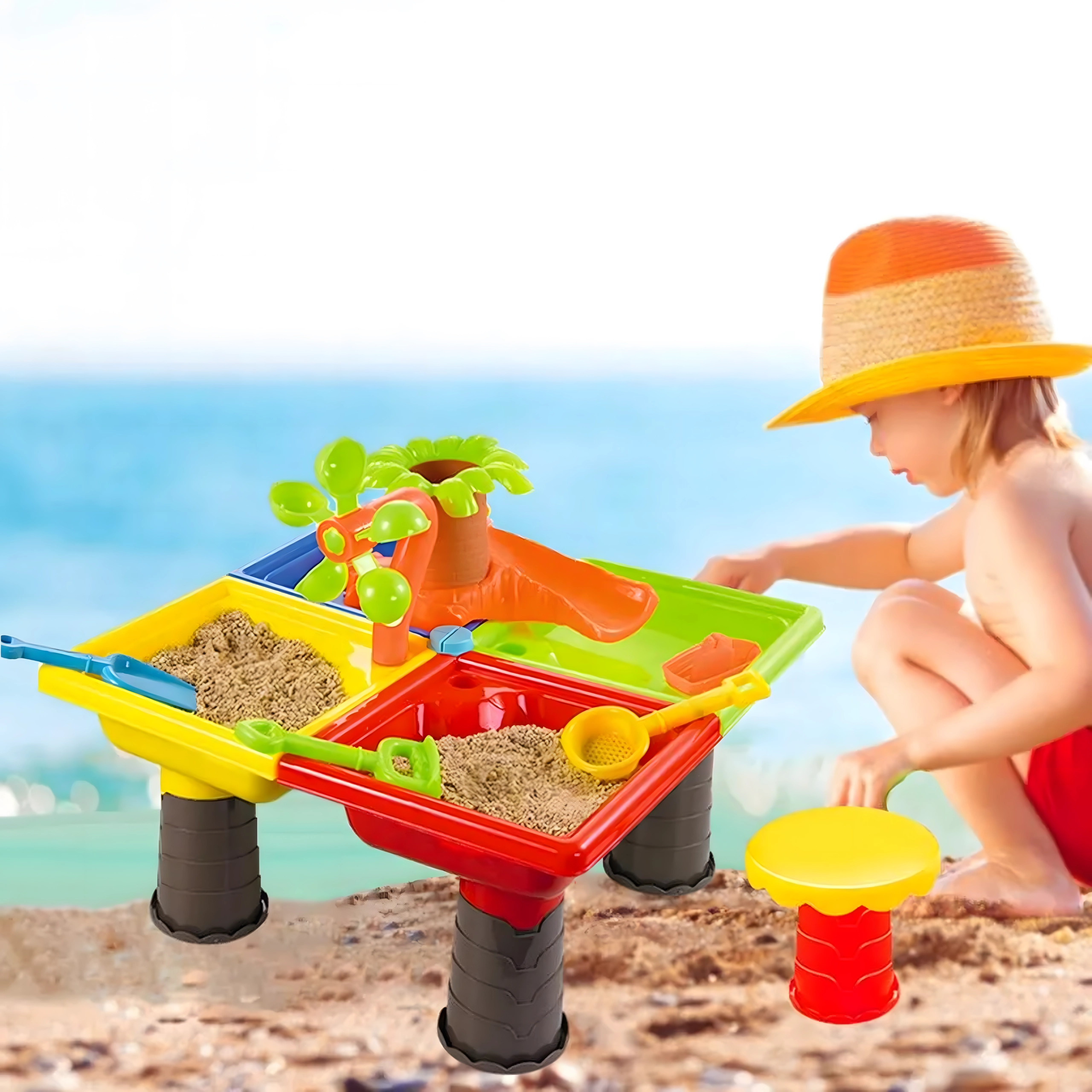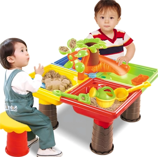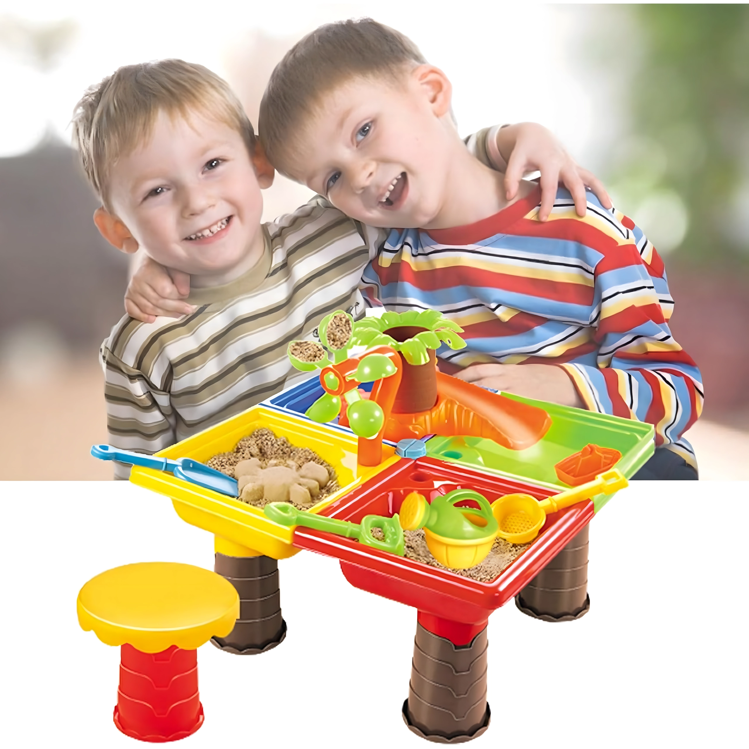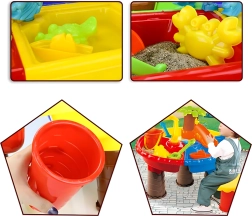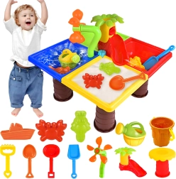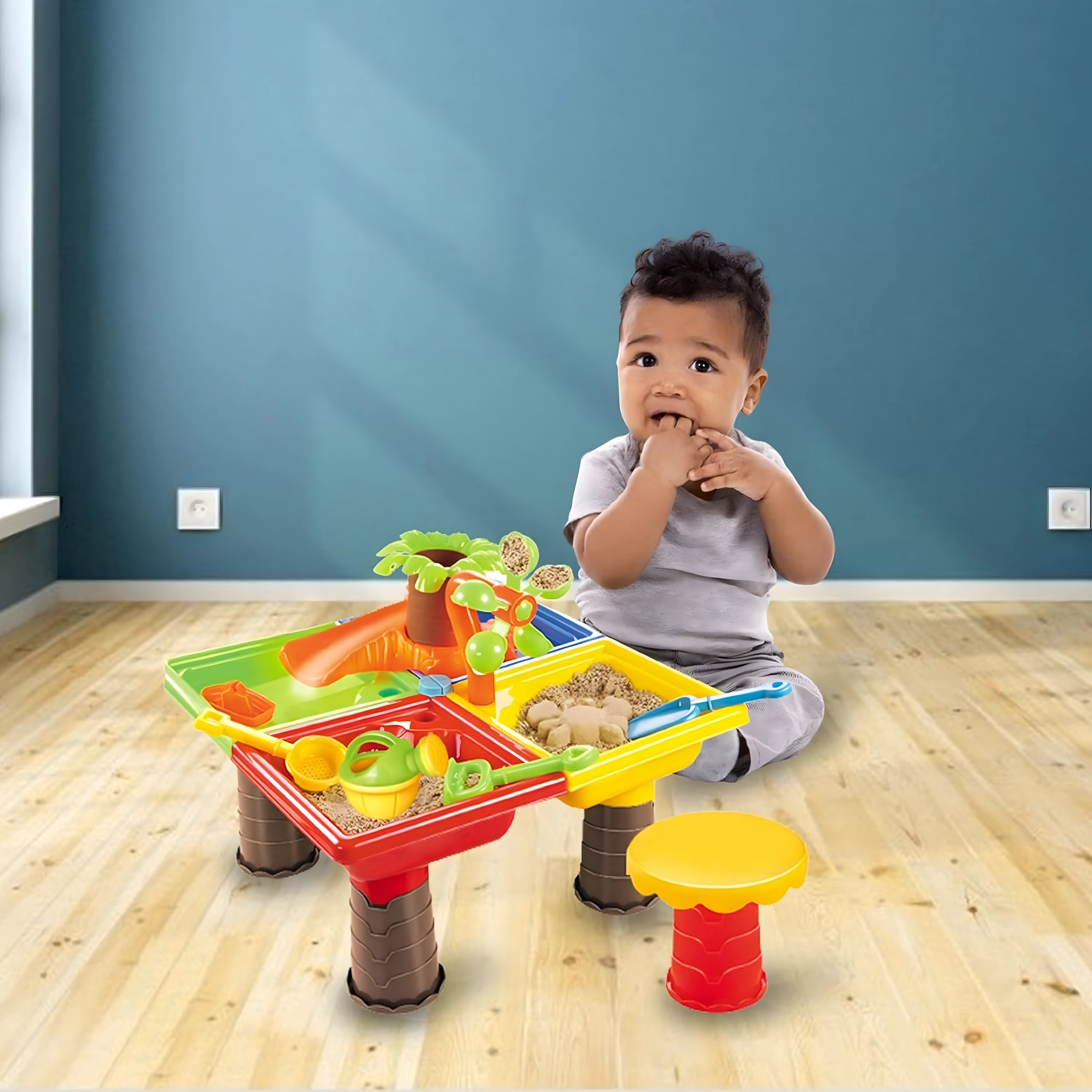 - Jeu eau et sable 2-en-1 – idéal pour le développement sensoriel et la création imaginative.
