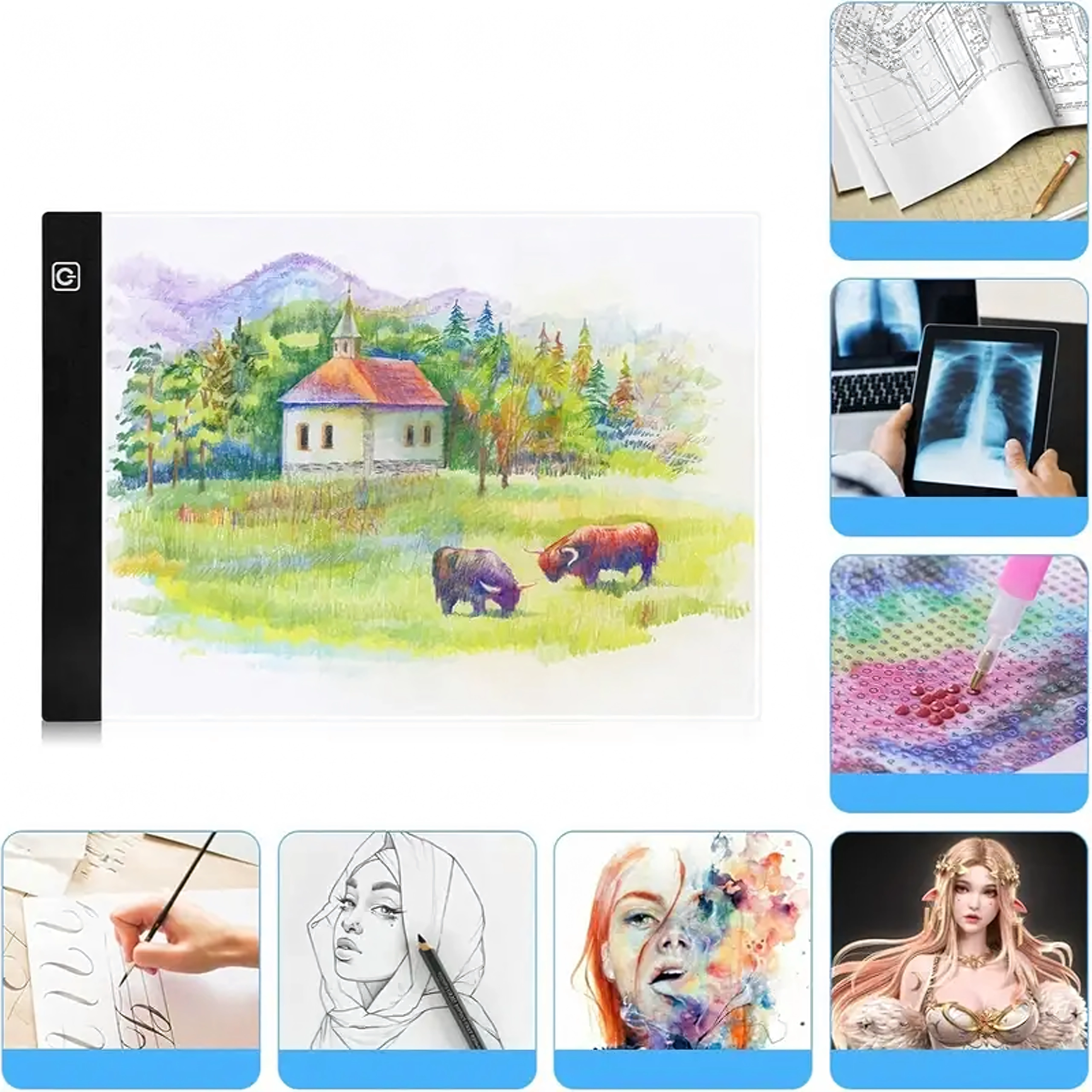 Tablette lumineuse LED ultrafine et légère au format A4 pour un dessin, un croquis et un report précis. Elle offre un éclairage uniforme, est alimentée par USB et idéale pour les artistes, les designers comme pour un usage loisir.