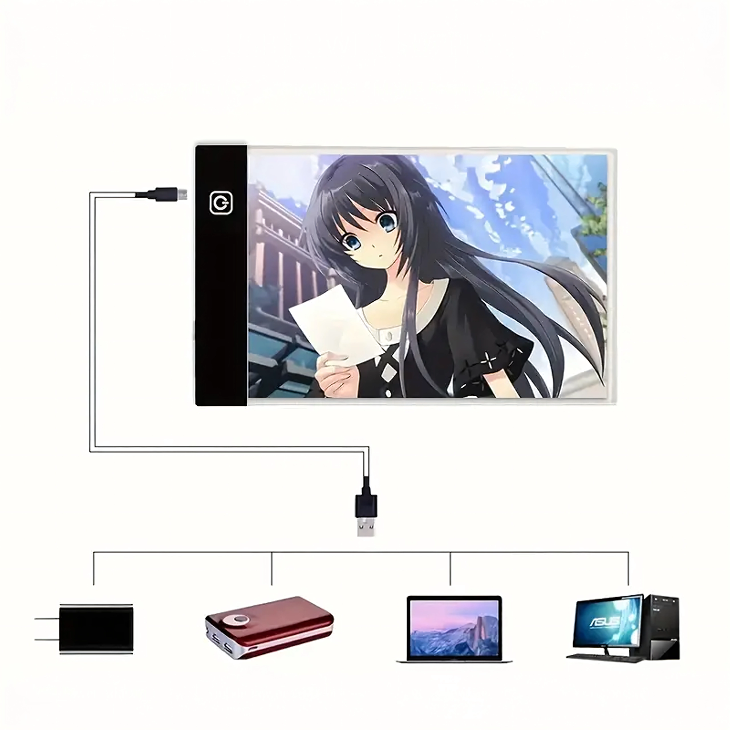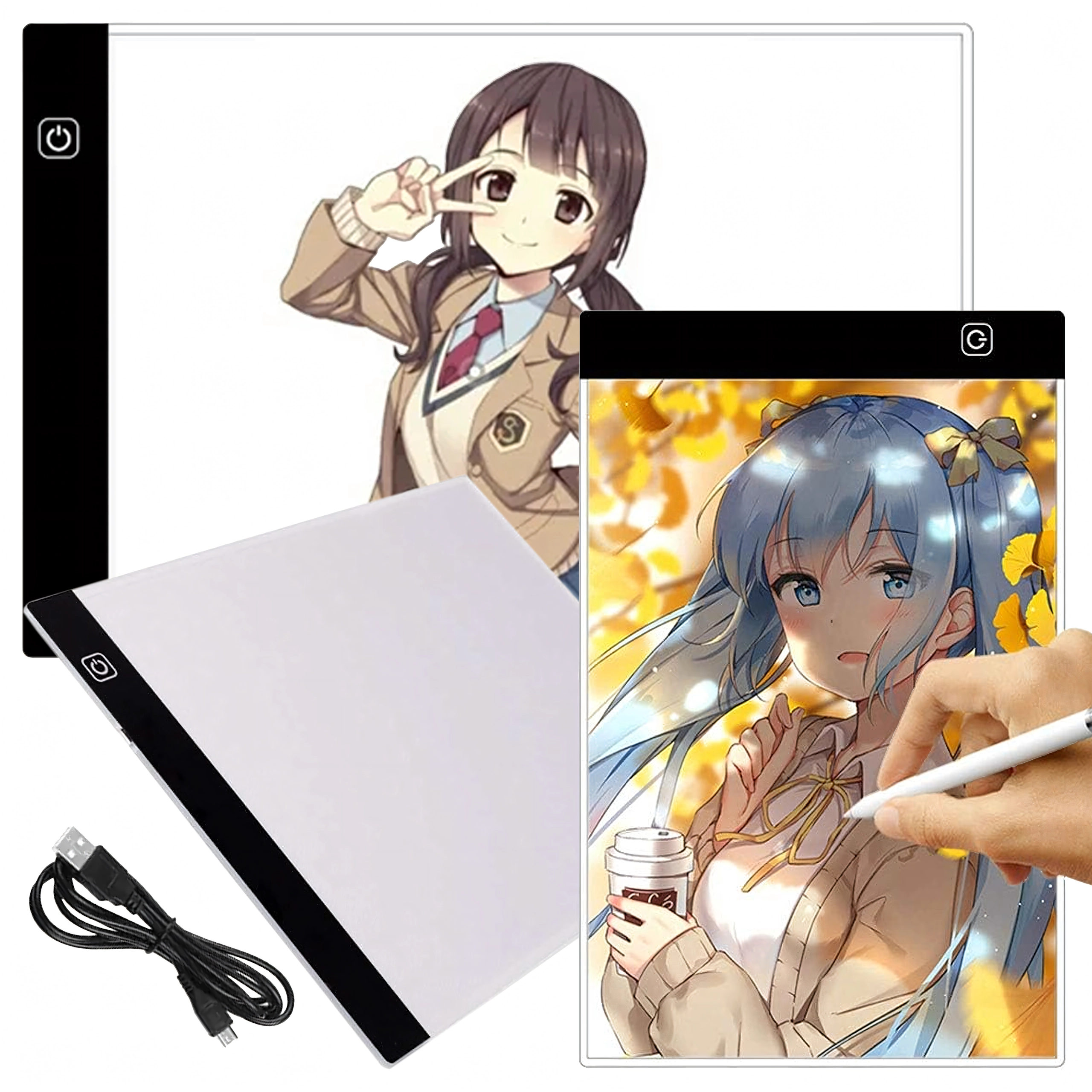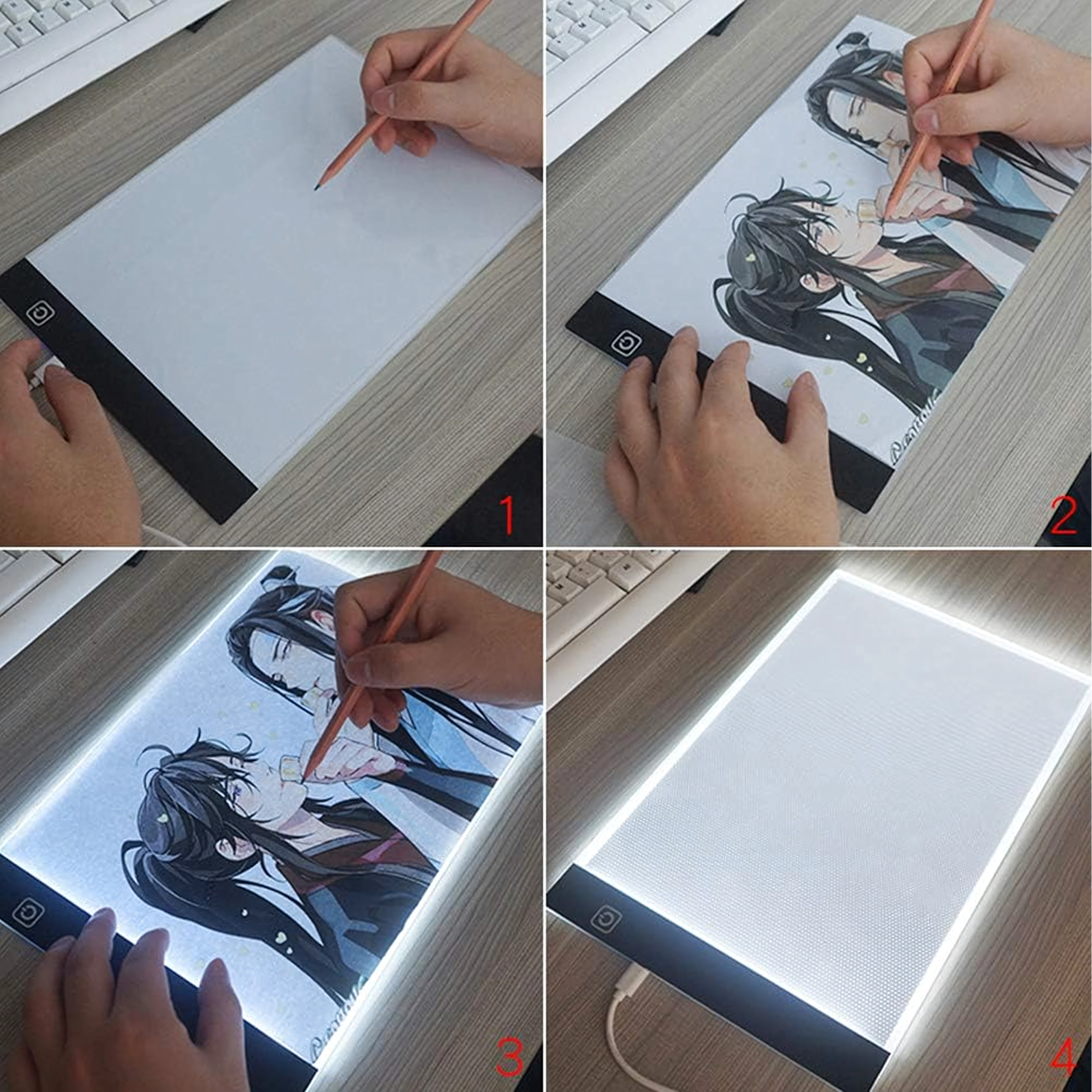 Cette tablette lumineuse LED A4 fine et portable facilite le travail créatif au quotidien. Grâce à son éclairage uniforme, les lignes transparaissent clairement à travers le papier, rendant le report de bandes dessinées, d’illustrations ou de croquis techniques rapide et précis. La commande s’effectue simplement via un bouton tactile et l’alimentation se fait par USB depuis un ordinateur portable, une batterie externe ou un adaptateur secteur.