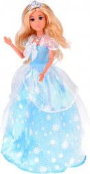 Une robe de bal bleue à motif de flocons de neige et des couches délicatement transparentes donnent au jeu un éclat féerique.