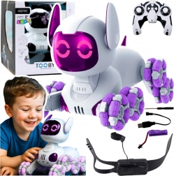 Le chien robot interactif TOOBY offre aux enfants un divertissement moderne avec la technologie 2,4 GHz, des rotations à 360°, des lumières LED et des sons dynamiques. Grâce à la transmission 4WD et aux roues omnidirectionnelles, il se déplace en douceur sur différentes surfaces. Vous pouvez le contrôler avec une télécommande ou par gestes de la main via un bracelet – idéal pour un jeu créatif et actif.