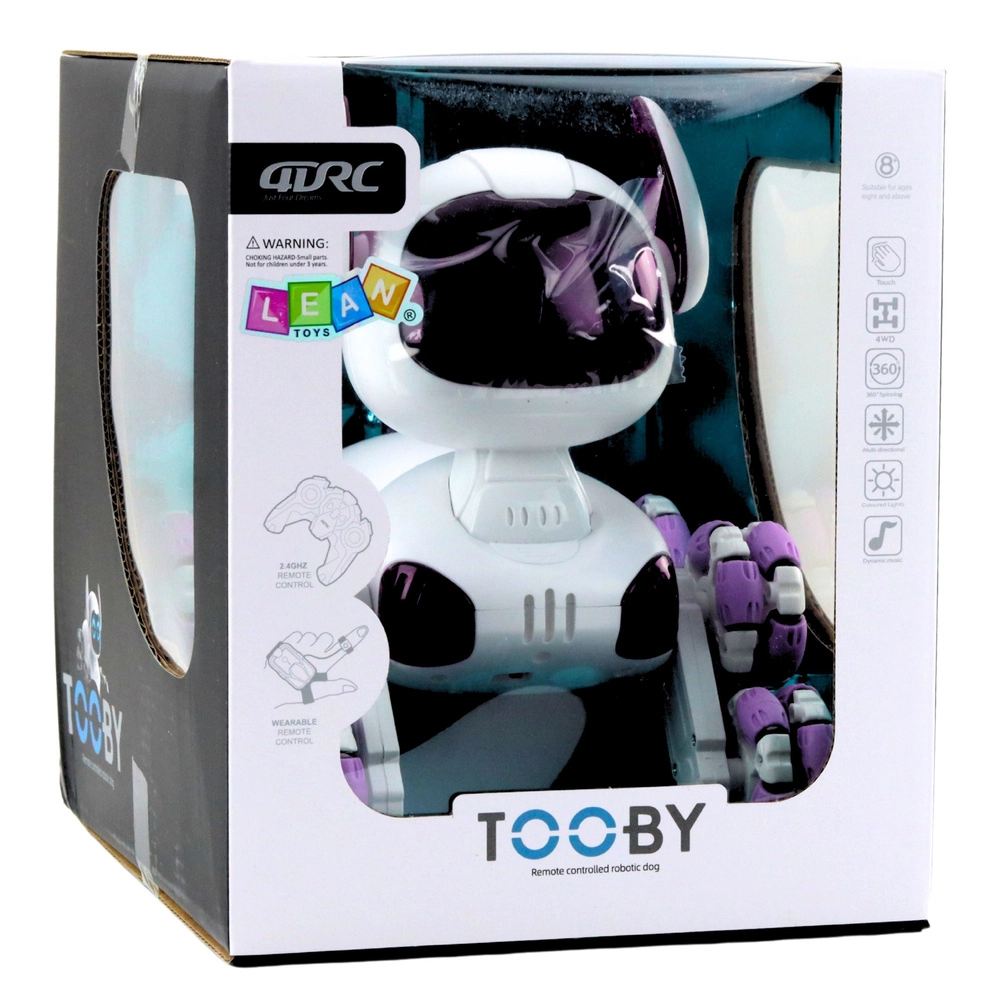 Le chien robot TOOBY séduit par son design futuriste, sa construction robuste et son pilotage intuitif. Les roues omnidirectionnelles et la transmission intégrale (4WD) assurent la stabilité même lors de manœuvres rapides. Les enfants apprécieront les effets LED colorés, la musique et les réactions au toucher, qui rendent le jeu plus réaliste.