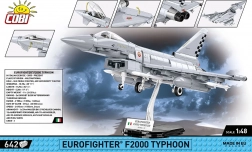 Assemblez l’iconique chasseur multirôle EUROFIGHTER F2000 TYPHOON à l’échelle 1:48 avec 642 briques COBI premium. Le modèle propose un cockpit ouvrant, des surfaces mobiles et un train d’atterrissage amovible pour une présentation épurée sur un support avec plaque nominative. Des impressions de haute qualité inaltérables, sans autocollants, et un manuel intuitif rendent le montage facile même pour les débutants.