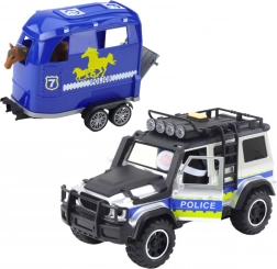 - voiture de police tout-terrain, remorque pour cheval, figurine de cheval, piles de test