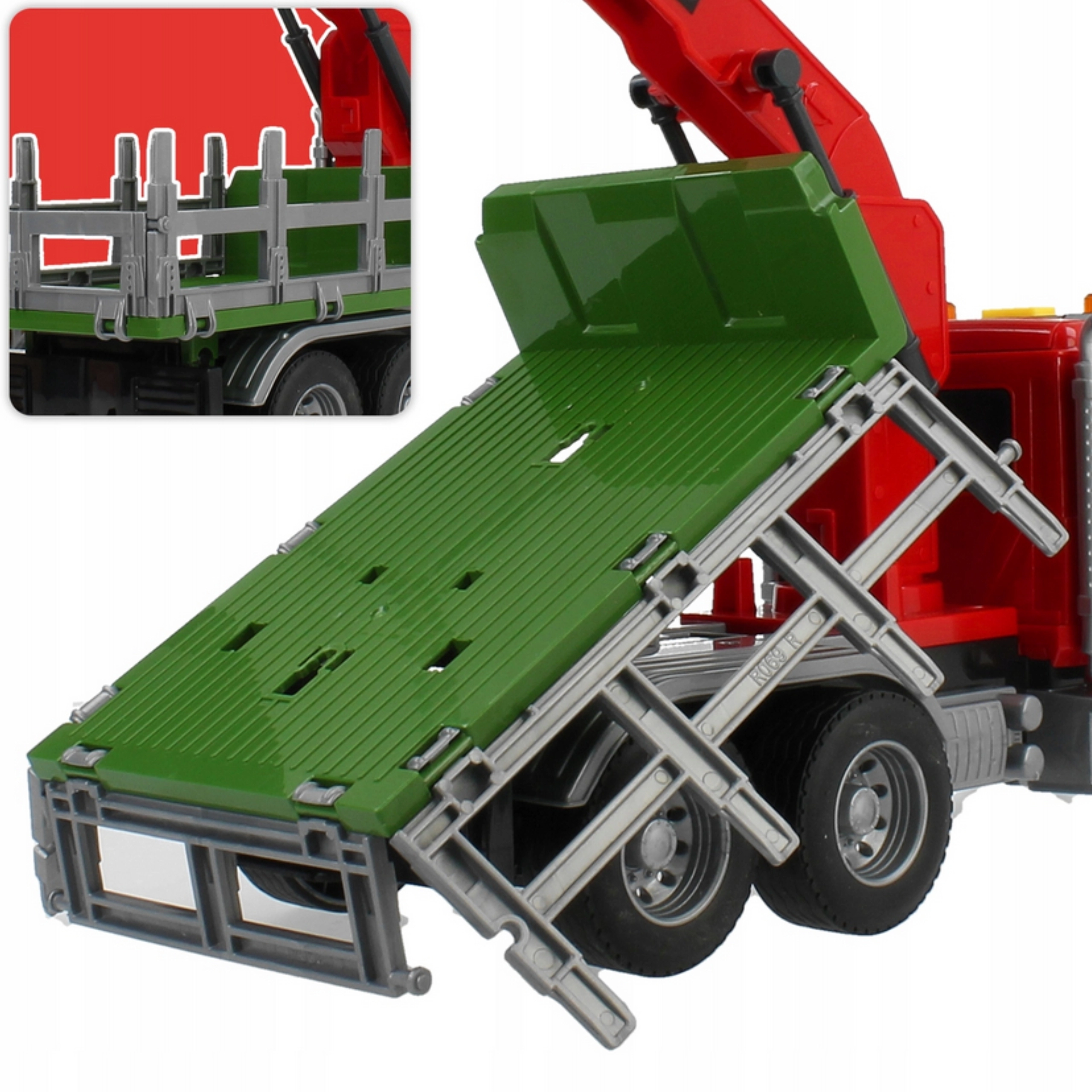 • Contenu de l’emballage : camion benne, grue pivotante avec pince, grumes en plastique