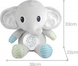 L’éléphant en peluche WOOPIE crée dans la chambre d’enfant une atmosphère magique et relaxante. La douce projection d’étoiles et de lunes, associée aux mélodies et au bruit blanc, aide les enfants à se calmer et à s’endormir en toute sécurité. Les commandes sont intuitives, avec volume réglable et arrêt automatique après 30, 60 ou 90 minutes.