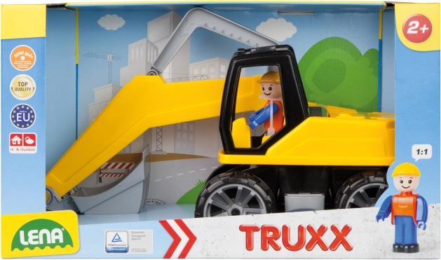 La pelle en plastique LENA TRUXX apporte aux enfants un jeu de construction réaliste. Grâce à sa construction solide et à son plastique résistant, elle convient aussi bien à l’intérieur qu’à l’extérieur. La manipulation est adaptée aux petites mains – les enfants lèvent et abaissent intuitivement le bras mobile et le godet, font pivoter la tourelle et explorent différentes possibilités de jeu.