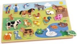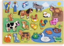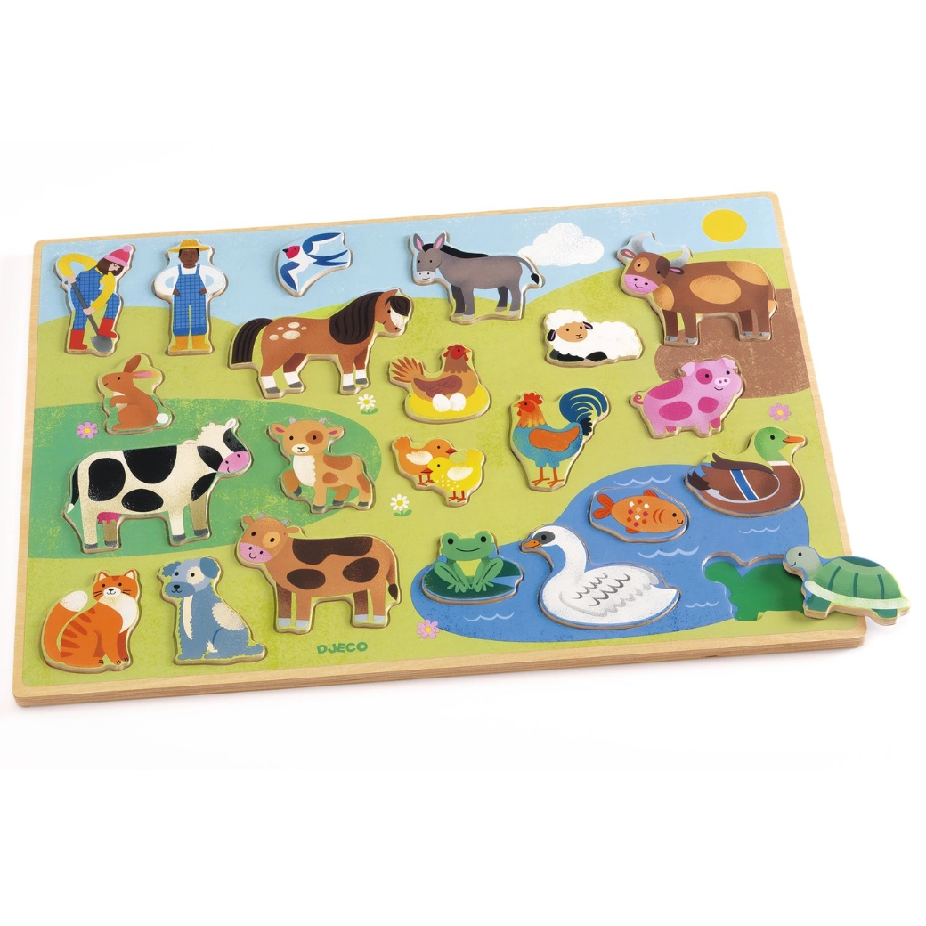 Ce puzzle d’encastrement de qualité sur le thème de la ferme aide les enfants, de manière ludique, à entraîner la coordination œil–main, la reconnaissance des formes et leurs premiers mots de vocabulaire. Les pièces solides se tiennent facilement en main et, grâce aux illustrations claires, les enfants comprennent vite où chaque pièce se place.