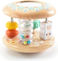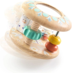 Découvrez le premier jouet sensoriel qui divertit tout en développant. Le hochet/rouleau en bois DJECO Baby Tutti combine bois lisse, miroir, perles et éléments rotatifs pour une stimulation visuelle, auditive et tactile. Des formes arrondies sûres, une fabrication de qualité et le développement de la motricité fine font de ce jouet un choix idéal pour les enfants dès environ 10 mois.