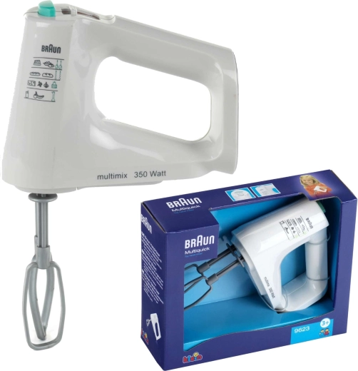Un mixeur à main pour enfants réaliste sous licence BRAUN de la marque KLEIN ravira tous les petits chefs. Il propose des fouets en mouvement, un effet sonore fidèle et une fonction de sécurité qui arrête la rotation au toucher. Idéal pour imiter la cuisine en toute sécurité à la maison. Sans emballage d’origine.