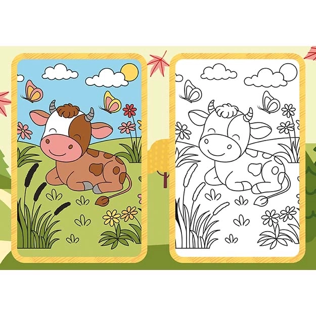 Un livre de coloriage amusant au format A5 sur le thème de la ferme ravira les petits artistes. Il contient 9 images en noir et blanc à colorier et 9 modèles en couleur pour s’inspirer facilement et développer la créativité.
