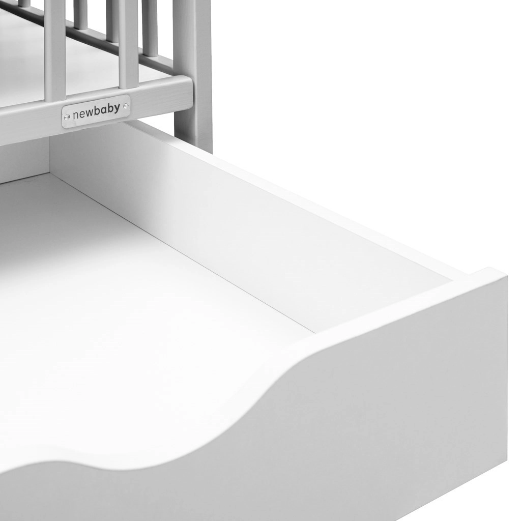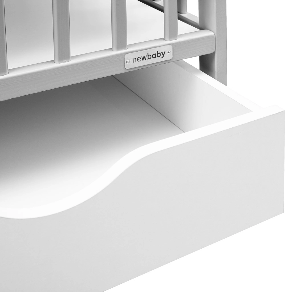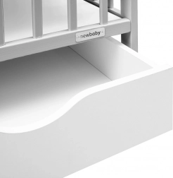 Le lit bébé NEW BABY Lilly en gris allie sécurité, espace de rangement pratique et design moderne. Il est fabriqué en bois de pin de haute qualité certifié FSC avec un vernis à base d’eau respectueux des enfants et de la nature. Il offre 3 positions de sommier, des barreaux amovibles pour un passage autonome de l’enfant et un tiroir spacieux sur coulisses pour un rangement organisé des indispensables.
