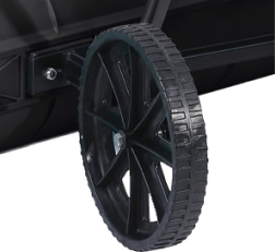 Deux grandes roues et une large lame permettent de pousser la neige en douceur devant soi. Pas de soulèvement – moins d’effort, nettoyage plus rapide.