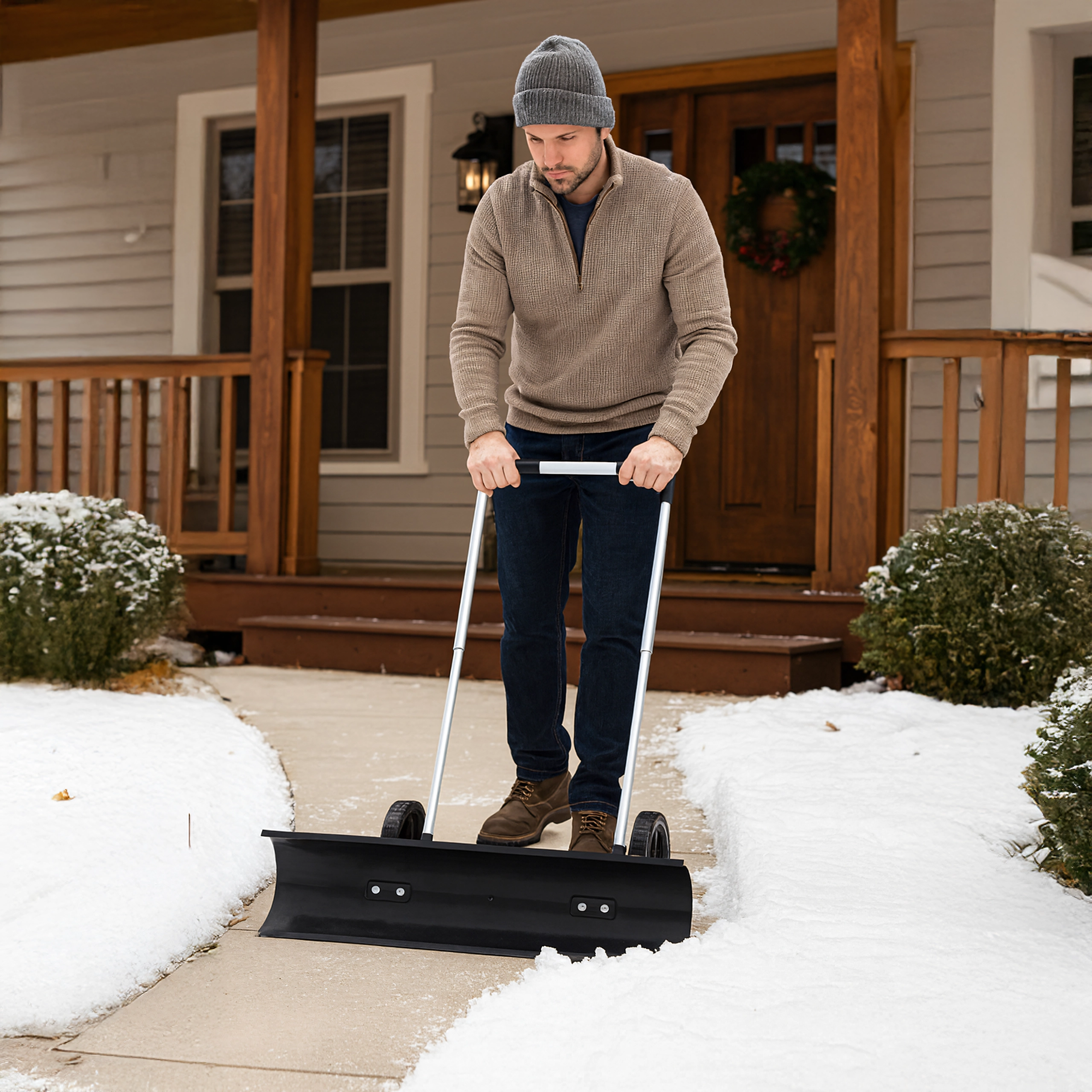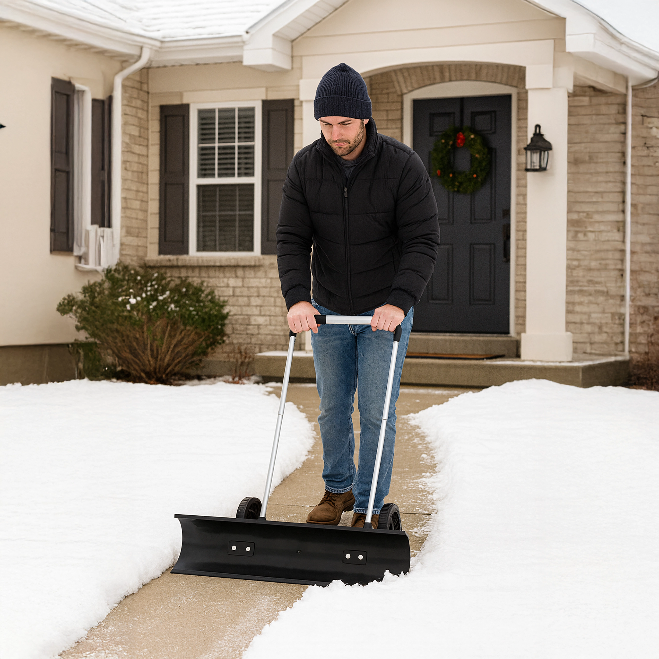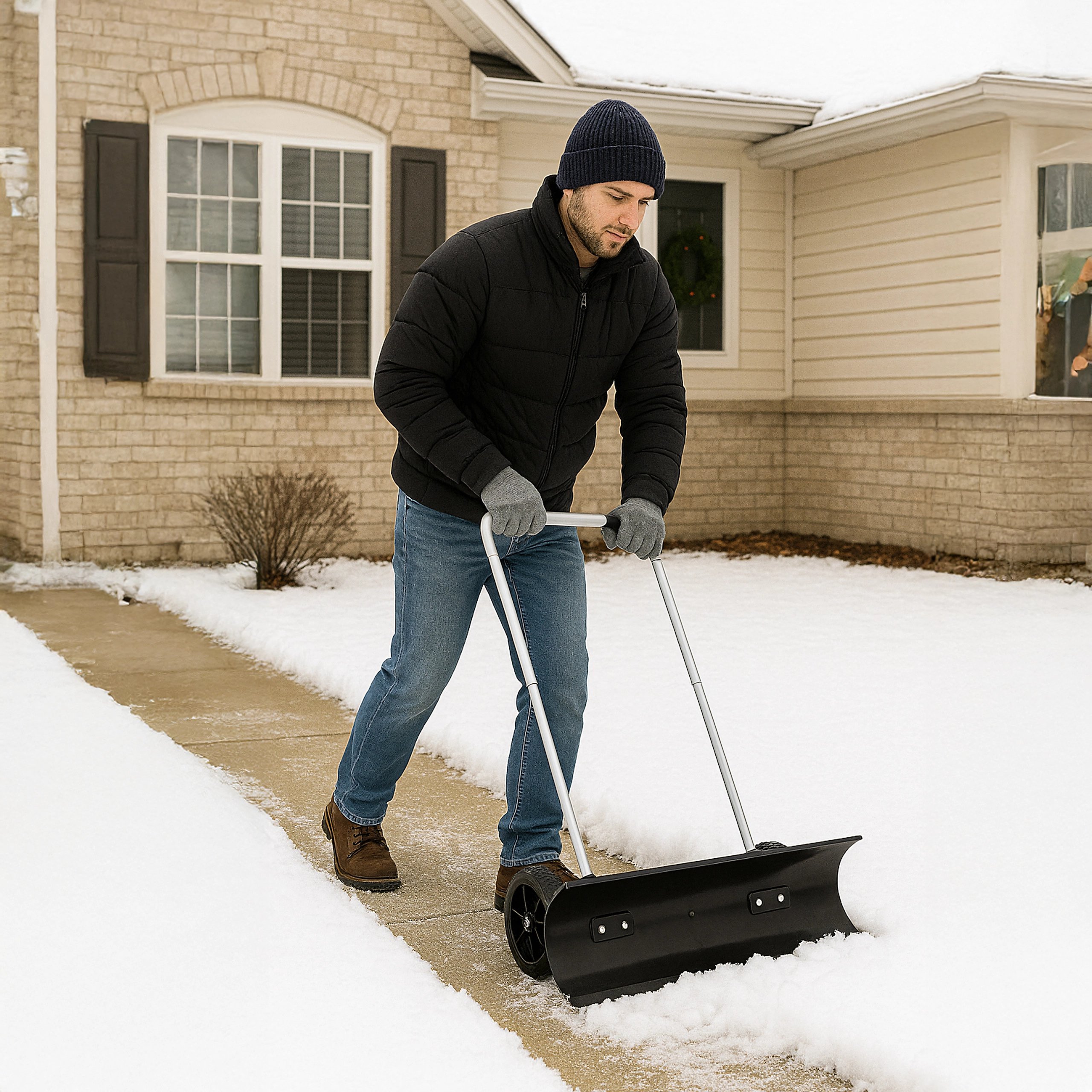 Transformez le déneigement pénible en poussée rapide et fluide. Ce chasse-neige manuel à roues, avec une largeur de travail de 95 cm, permet de pousser la neige devant soi – sans la soulever. Les roues intégrées réduisent la résistance, préservent le dos et les mains, tandis que la large lame incurvée regroupe efficacement la neige des trottoirs et des allées. Une construction durable en PP, ABS et acier garantit une longue durée de vie même dans des conditions hivernales exigeantes.