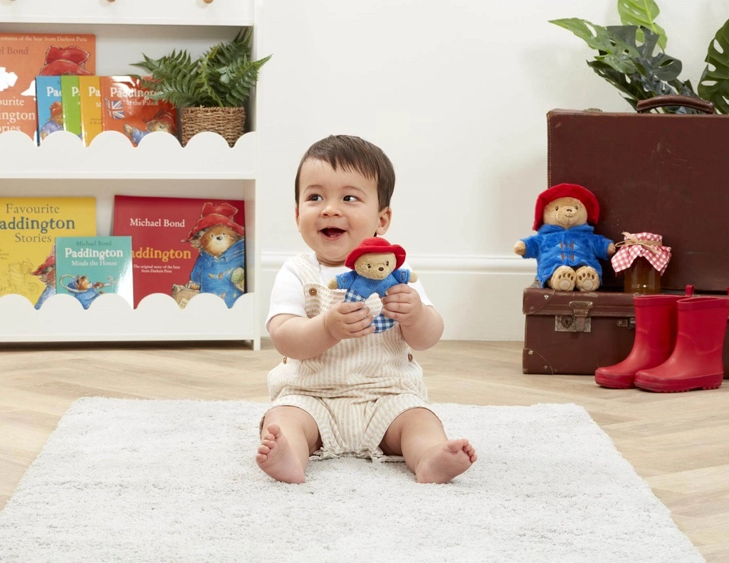 Ce hochet tout doux inspiré de l’ourson PADDINGTON avec son chapeau rouge et son manteau bleu est le jouet idéal pour votre bébé. Grâce à sa matière moelleuse, il tient confortablement même dans les plus petites mains et soutient en toute sécurité le développement du toucher et de l’ouïe.
