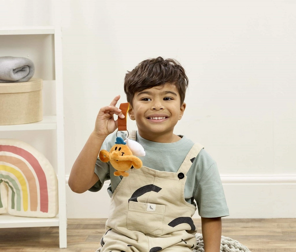 La peluche douce est agréable au toucher, tandis que le mousqueton en métal robuste assure une fixation facile et sûre. Idéal pour les enfants à partir de 18 mois ainsi que pour les collectionneurs et fans adultes de la série MR. MEN de Roger Hargreaves.