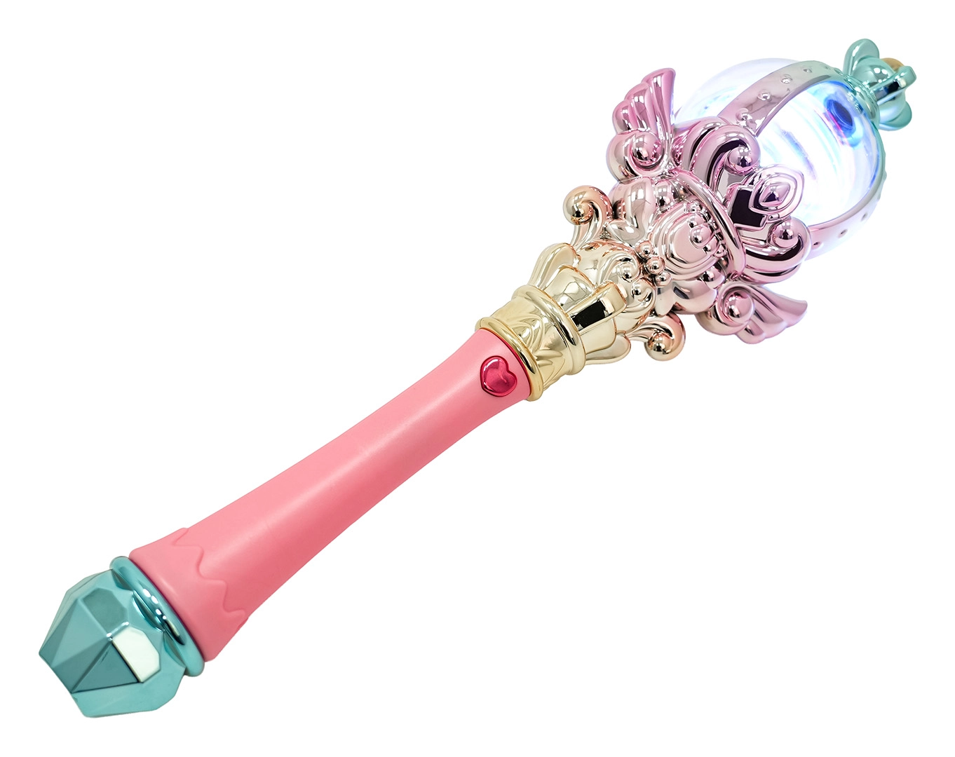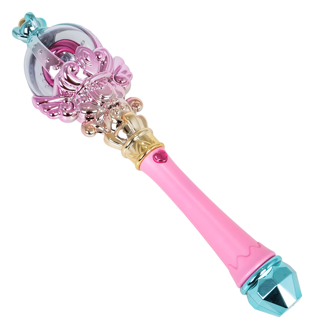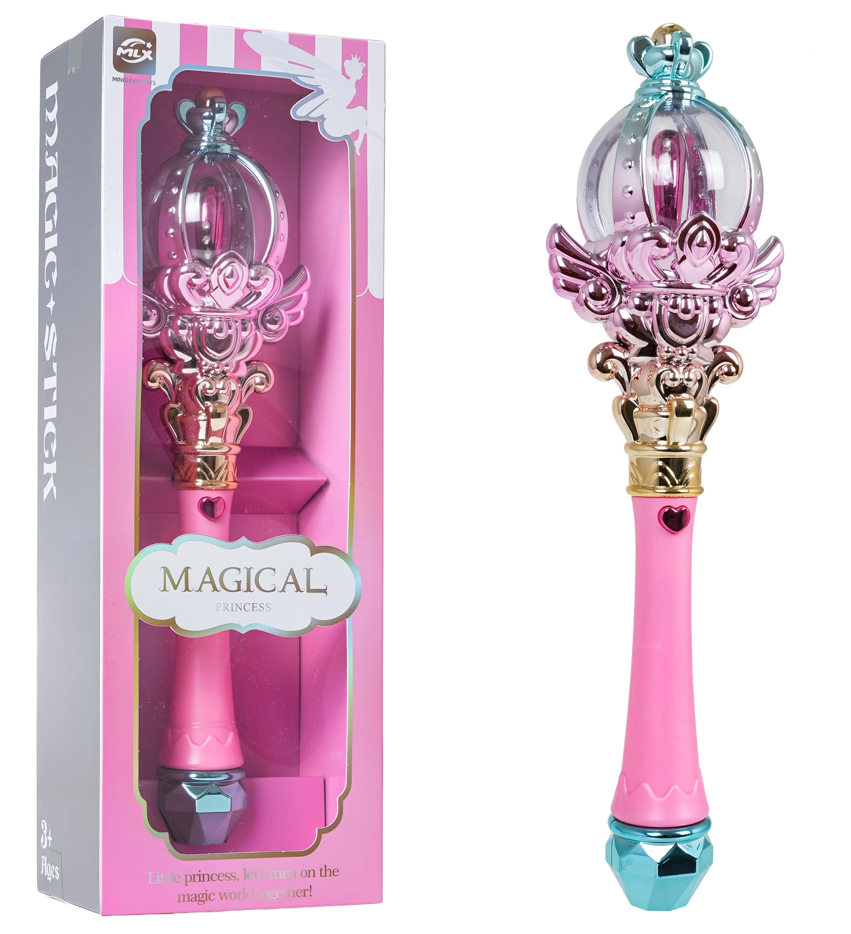 Cette baguette magique interactive transforme chaque jeu en aventure féerique. Le dôme translucide et les détails cristallins s’illuminent en vert, bleu et rouge, tandis que le bouton sur la poignée déclenche sons et mélodies magiques. Idéale pour jouer aux princesses, fées ou magiciens.