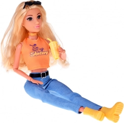 Un ensemble d’accessoires de mode stimule l’imagination et le jeu de rôle: lunettes cœur, sac à main, gobelet avec boisson et perche à selfie avec smartphone (factice). Les longs cheveux blonds sont parfaits à coiffer et pour créer des coiffures – un excellent choix pour les enfants créatifs qui aiment la mode et les tendances sociales.