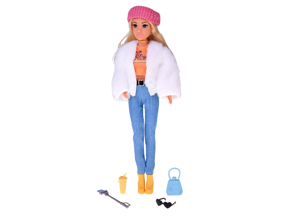 La poupée ANLILY au style hivernal fera le bonheur de tout petit passionné de mode. Elle a de longs cheveux clairs, des membres entièrement articulés et un riche ensemble d’accessoires pour un jeu créatif. Inclus: un doux manteau blanc en fausse fourrure, un bonnet rose, des lunettes de soleil en forme de cœur, un sac à main, un gobelet avec boisson et une perche à selfie – tout pour des scènes d’influenceuse et des prises de vue sans écran.