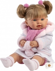 La poupée LLORENS Alexandra est fabriquée à la main en Espagne avec une attention portée à chaque détail. Elle possède un corps souple en coton pour des câlins agréables, ainsi que des mains, des pieds et une tête en vinyle avec un ombrage délicat, des cils et des yeux expressifs. Après retrait de la tétine, la poupée émet des sons de pleurs, favorisant le jeu empathique et d’imitation.