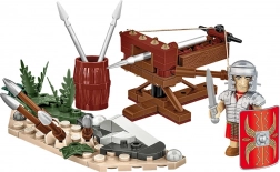 Découvrez la puissance de la technologie antique. Le scorpion romain était une arme de siège compacte et extrêmement précise, tirant des traits similaires à ceux d’une arbalète. Ce set reproduit fidèlement les détails de la machine, complétés par une mini scénographie avec barricades et un légionnaire muni du bouclier Scutum, de l’épée Gladius, de la cuirasse Lorica Segmentata et du casque Galea.