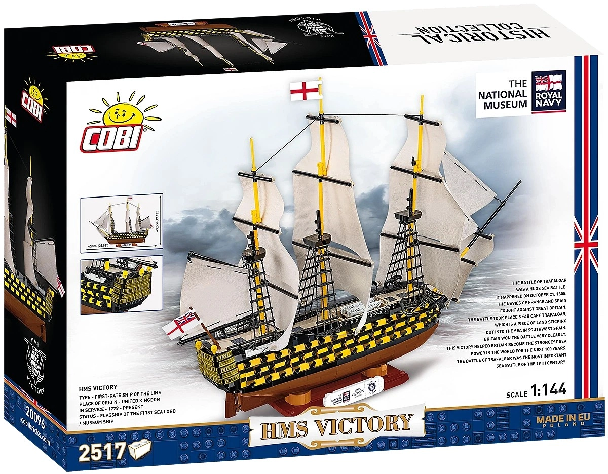 Le modèle est produit sous licence officielle du National Museum of the Royal Navy et est entièrement compatible avec d’autres marques de briques de construction. Un cadeau idéal pour les amateurs d’histoire navale, des guerres napoléoniennes et les collectionneurs de modèles de navires d’exposition.