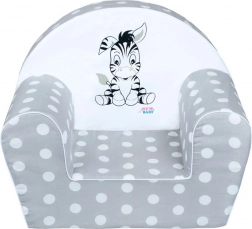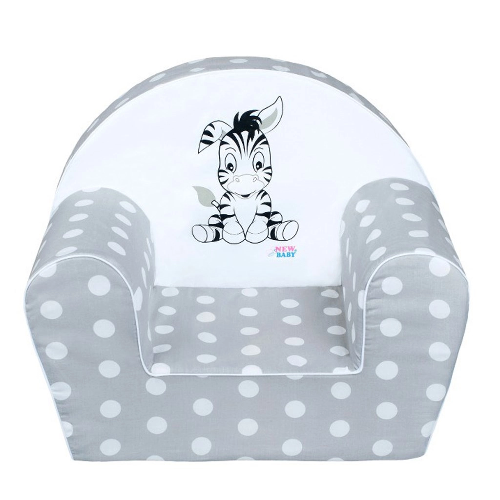 Adorable fauteuil pour enfant NEW BABY Zèbre de couleur grise à pois, idéal pour les premières séances assises de votre enfant. Fabriqué en mousse de polyuréthane légère, il possède une housse en coton amovible et lavable. Il offre un assis confortable et sécurisé, est léger à transporter et s’intègre parfaitement dans toute chambre d’enfant.