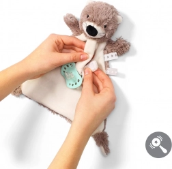 La lanière à scratch garde la tétine toujours à portée de main et évite de la perdre. Les rubans cousus invitent à la saisie et entraînent la motricité fine. Le compagnon idéal pour jouer à la maison, en promenade ou en voyage.