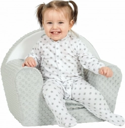 Le fauteuil pour enfant NEW BABY, à la fois stylé et pratique, en minky ultra doux d’un élégant gris, est idéal pour les tout-petits. Sa surface moelleuse avec délicats pois 3D est agréable au toucher, tandis que la structure en mousse stable assure le confort pour jouer, feuilleter des livres et se détendre. Le motif renard, adorable, apporte une touche ludique à la chambre.