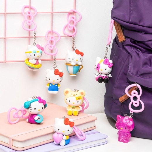 Adorable porte-clés au motif sous licence Hello Kitty pour décorer sac à dos, clés ou trousse. Chaque emballage contient une figurine aléatoire parmi 8 variantes au total. Une boucle en plastique pour la suspension assure une fixation facile, idéale comme petit cadeau pour les fans de Hello Kitty.