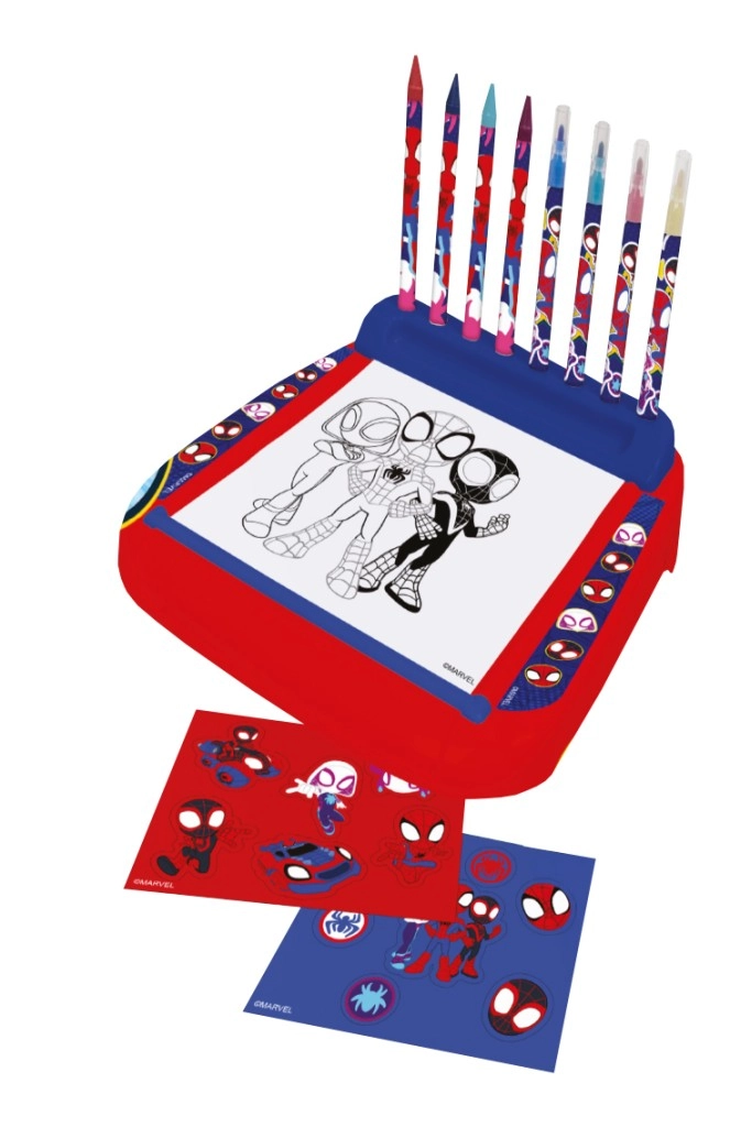 Découvrez un amusant support créatif aux motifs SPIDEY, qui transforme le coloriage en une activité confortable et bien organisée. Grâce au rouleau de coloriages, les enfants ont toujours de nouveaux dessins à colorier, tandis que le support maintient le papier en place et la surface de travail propre.