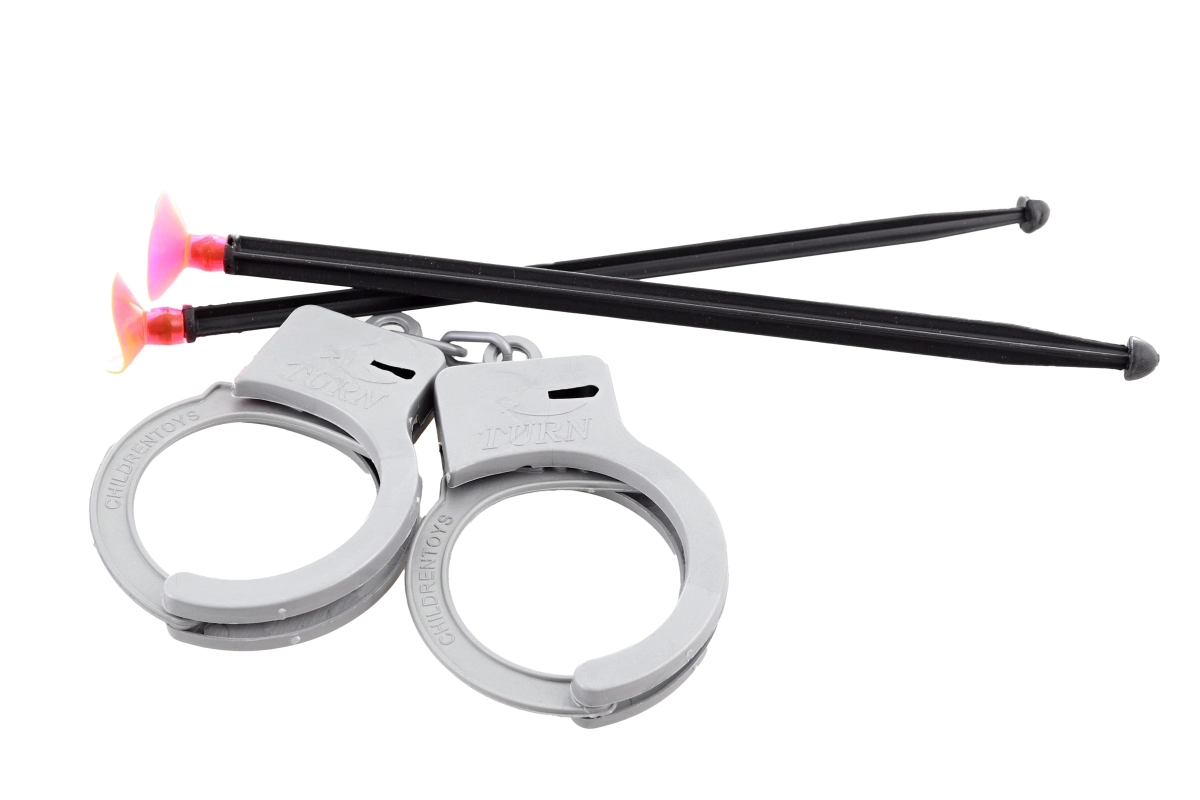 Des menottes légères en plastique encouragent le jeu de rôle et stimulent l’imagination lors de scénarios policiers.