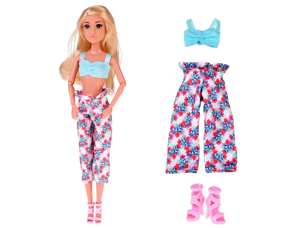 Illuminez le jeu de style avec un ensemble coloré de tenues pour poupée, proposant deux looks d’été et des accessoires tendance. Retrouvez une robe à fleurs, un crop top turquoise avec un pantalon à motif floral, ainsi que des escarpins roses, des lunettes de soleil en forme de cœur et d’autres petits détails pour un mix & match créatif et un jeu de mode imaginatif.