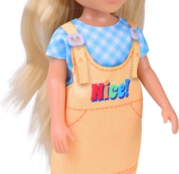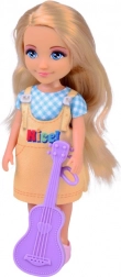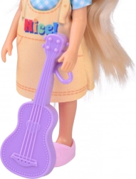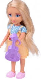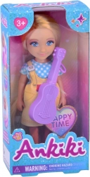 Adorable mini poupée Ankiki avec de longs cheveux blonds et une guitare violette, idéale pour le jeu créatif. Elle mesure env. 14 cm, porte une robe jaune avec l’inscription « Nice! » et de petites chaussures roses. Grâce à ses cheveux coiffables et à ses membres articulés, les enfants peuvent inventer de nombreuses scènes musicales et de mode.