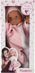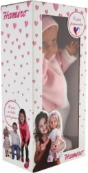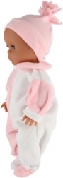Cette poupée bébé réaliste est une excellente compagne de jeu au quotidien. Grâce à son corps rigide, elle garde bien sa forme, s’habille facilement et résiste même à une utilisation fréquente. La grenouillère blanc‑rose stylée avec un petit bonnet rose souligne son allure délicate.
