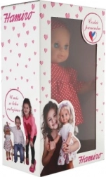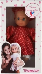 Adorable poupée bébé avec un corps en tissu et une longueur de 30 cm, qui ravira chaque petite maman. La robe rouge à pois blancs stylée et le foulard assorti stimulent l’imagination et le jeu d’imitation. Livrée dans une boîte 20 × 35 × 13 cm.