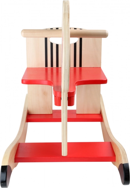 Cheval à bascule en bois small foot avec étoiles. Fabrication robuste, assise 24 cm, repose-pieds et poignées. Développe l’équilibre et la coordination. Pour enfants 1+.