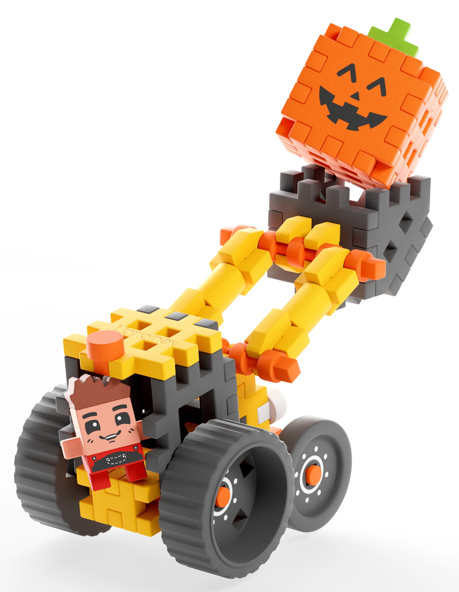 Construisez un chargeur frontal réaliste et partez à l’aventure à la ferme avec la figurine de Freddy. Grâce aux pièces souples Mini Waffle, le set se monte et se démonte facilement, permettant aux enfants de construire, modifier et inventer de nouvelles histoires encore et encore. Le bras mobile et les roues robustes offrent beaucoup d’action et d’amusement pour transporter des “citrouilles” et nettoyer la cour.