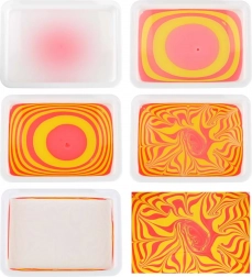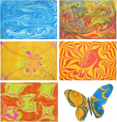 Déposez des gouttes de couleur, créez un motif avec le peigne ou une baguette et transférez-le sur le papier. Une méthode simple qui conduit à des résultats magnifiques dès le premier essai.